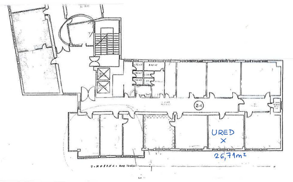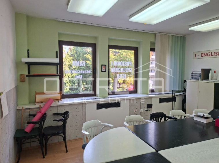 A 26.71 m² office is available for rent on the first floor of a business building in the city center, right next to the beautiful Vatroslav Jagić Park.