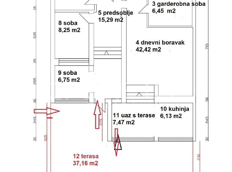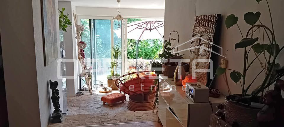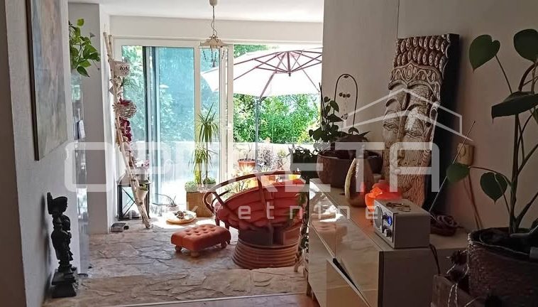 In Crikvenica, just 250 meters from the sea, on the peaceful southern side of the building, a charming apartment full of rustic character and bohemian warmth is for sale. Located on the ground floor, with its own private entrance, a large stone terrace, and a sea view, this property feels more like a house than a typical apartment – offering a sense of independence, privacy, and connection to nature.