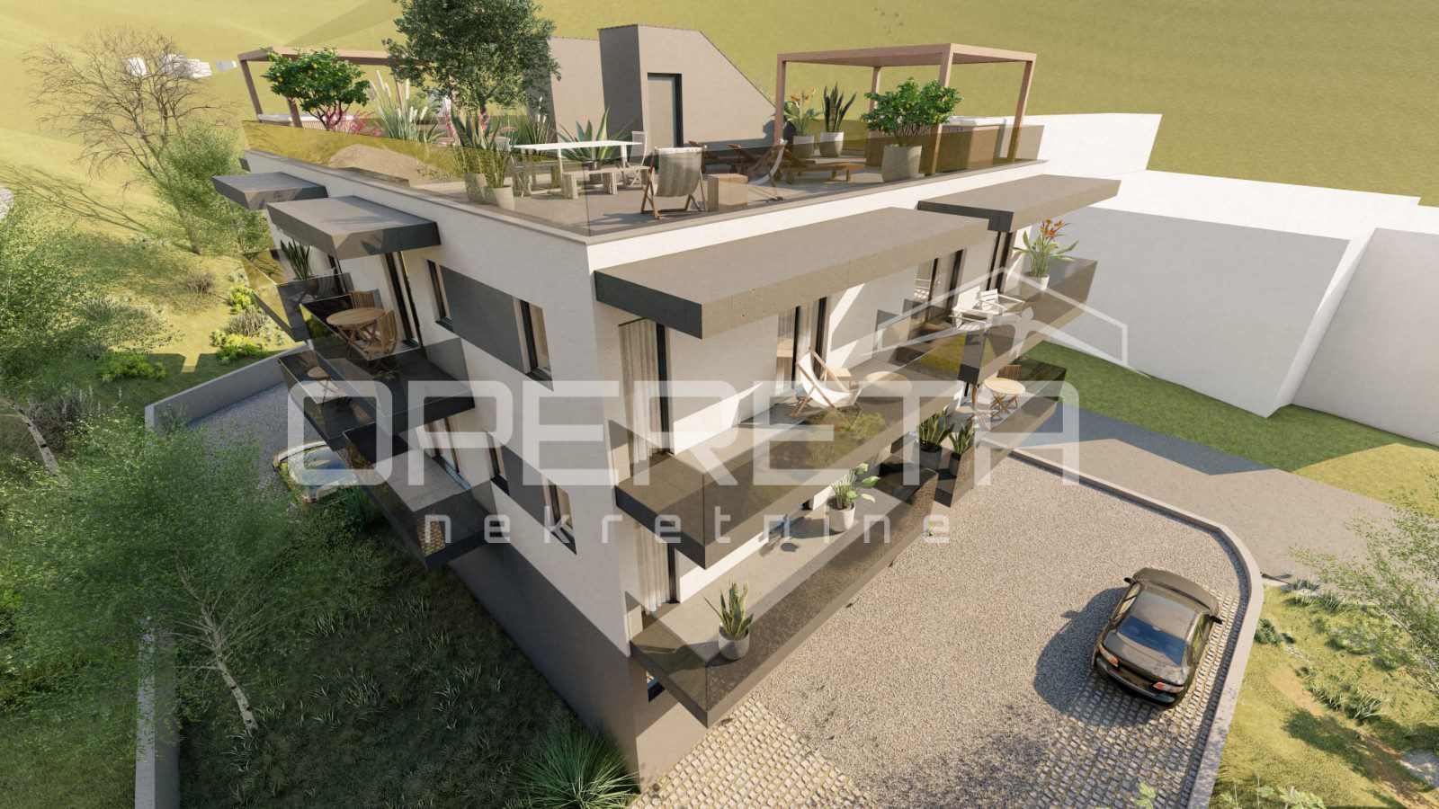 In a quiet and sought-after area of Hvar town, on the first floor of a modern residential building, a luxurious two-bedroom apartment with a net area of 56,37 m² is for sale. The apartment is carefully designed to maximize comfort and functionality.