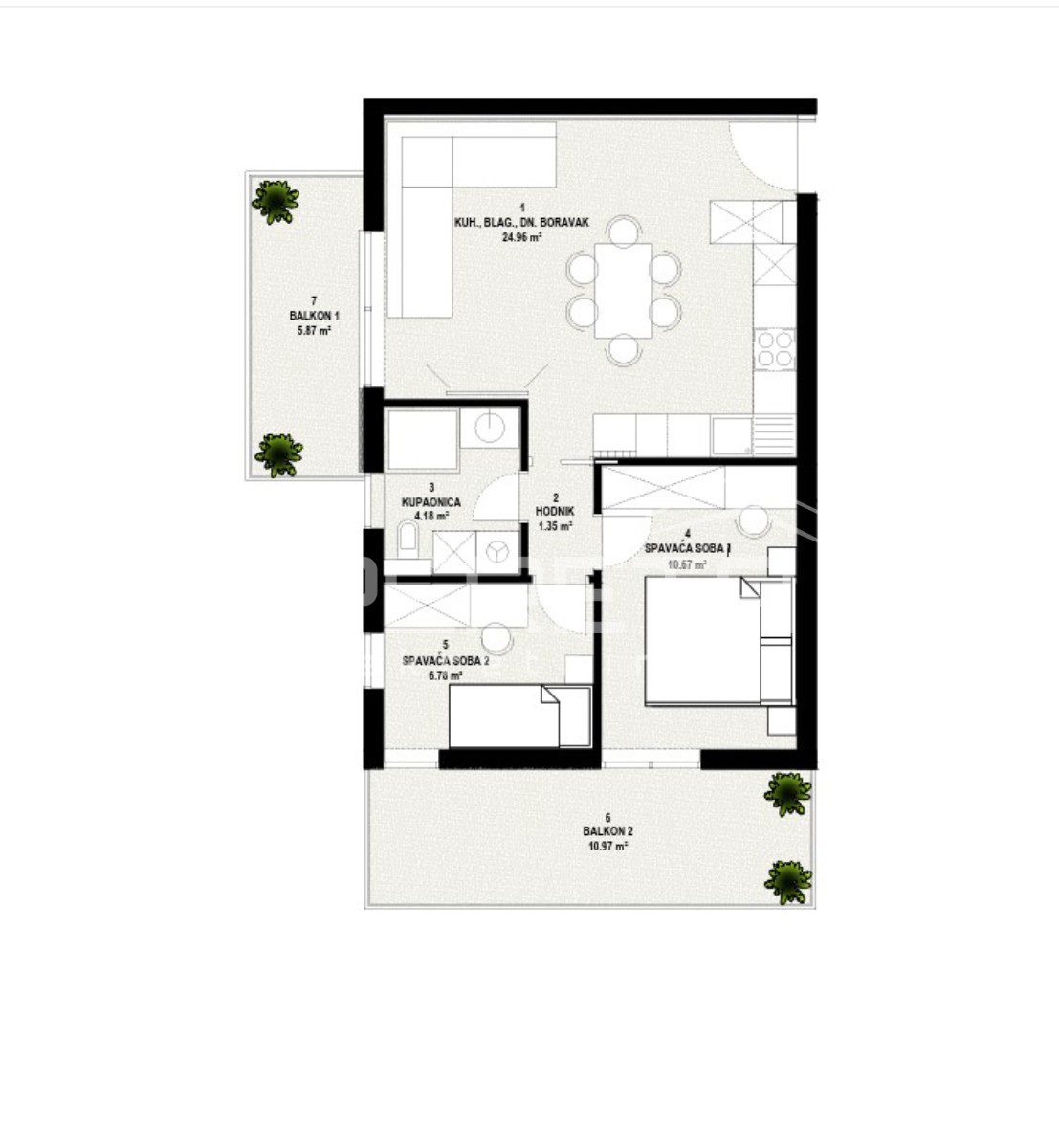 The living room, kitchen, and dining area create a bright open space, while the two bedrooms provide privacy and relaxation. The apartment has two balconies offering pleasant outdoor connection and a Mediterranean lifestyle. The sea is only a 10-minute walk away, and the center of Hvar is easily accessible.