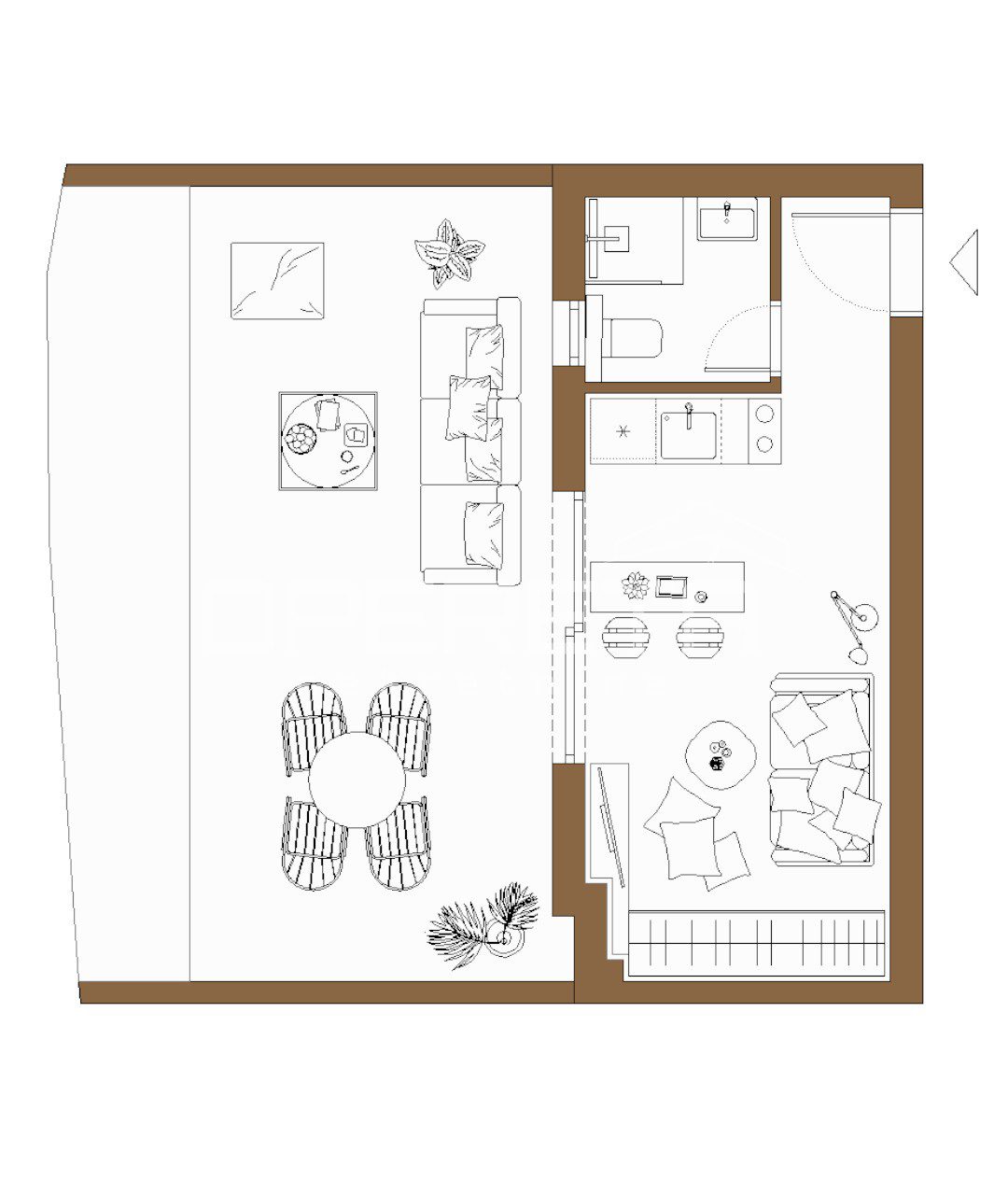 The construction uses carefully selected, high-quality materials and reliable brands. Schüco aluminium exterior joinery is being installed, and the façade is insulated with mineral wool. Heating and cooling are provided by DAIKIN air conditioning systems, and underfloor heating is planned in the bathroom. At this construction stage, underfloor heating can also be installed throughout the entire unit upon request. The floors are finished with oak parquet and high-grade ceramics, and the bathroom includes sanitary ware from trusted brands such as Hans Grohe and Geberit.
