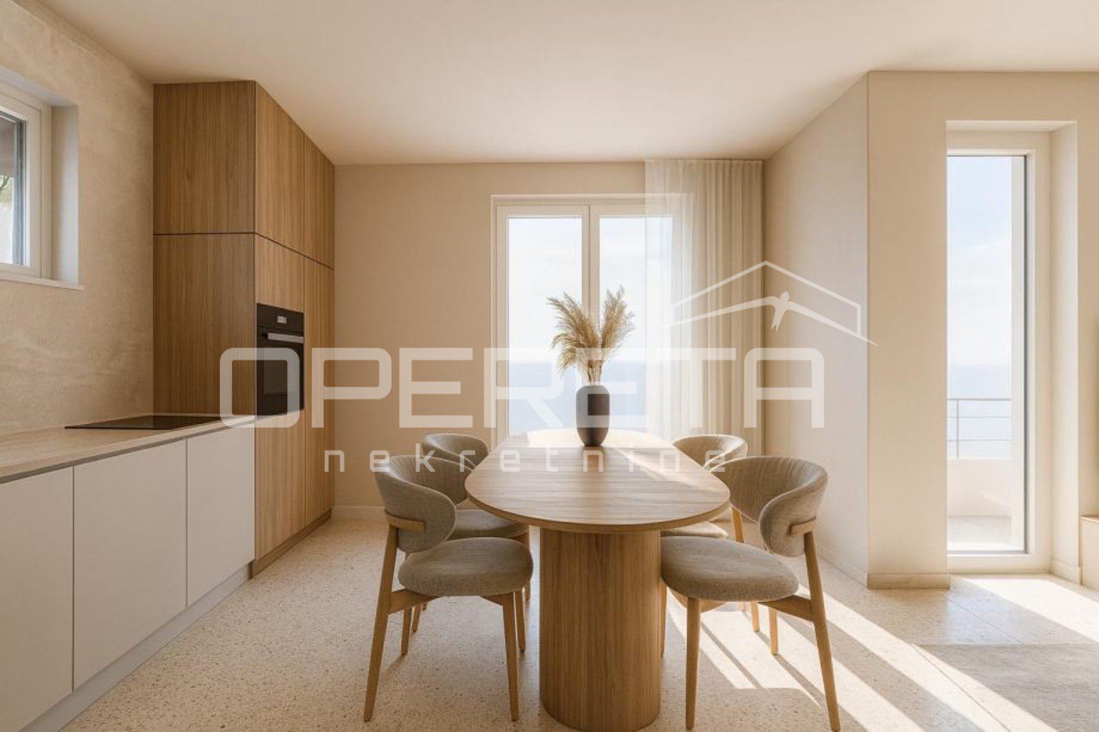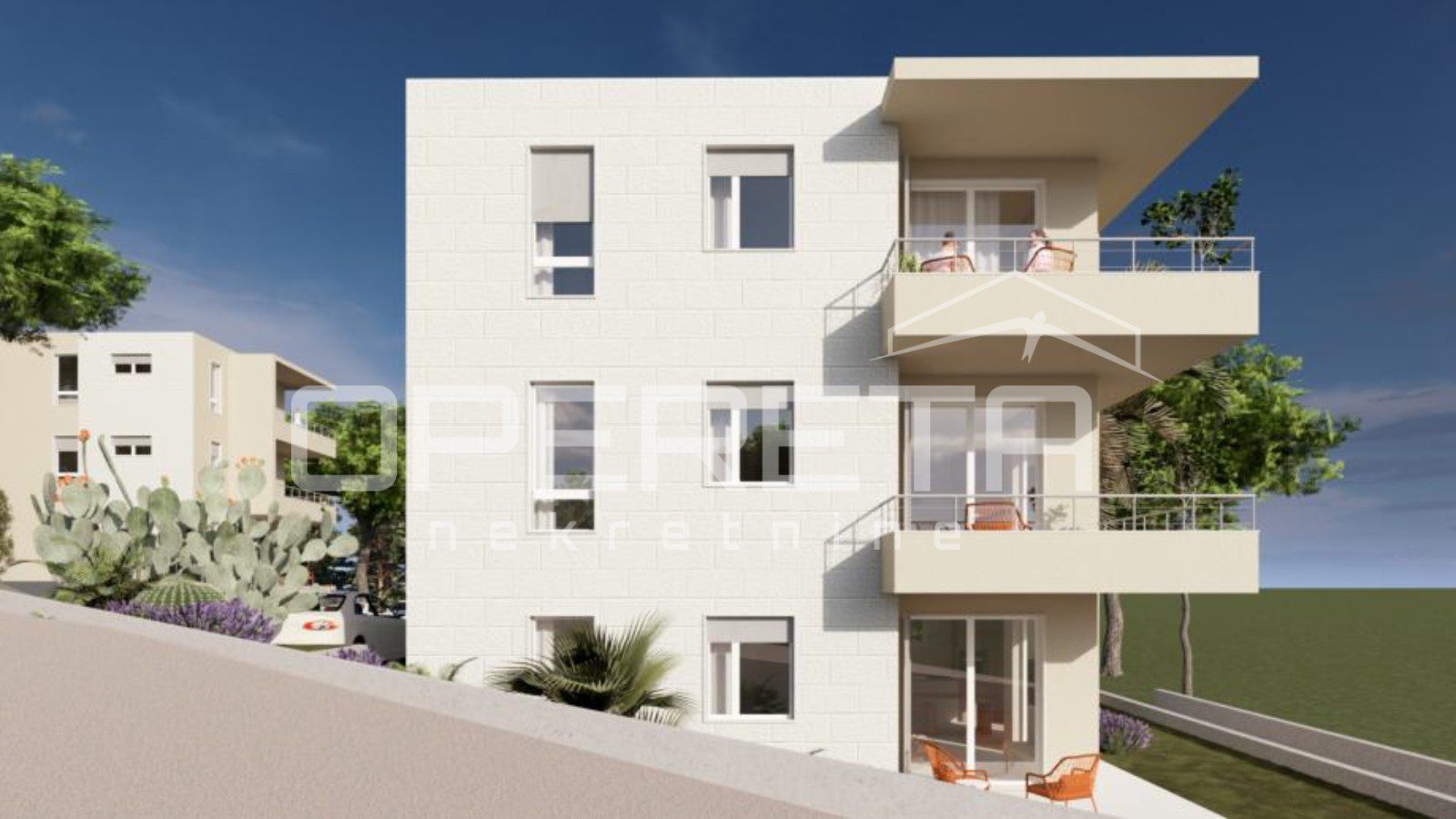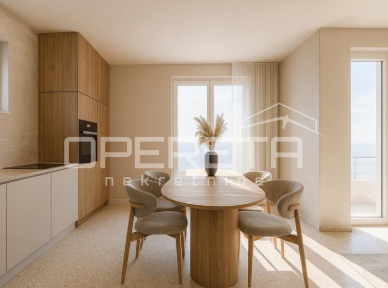 In a prestigious location in the very heart of Komiža, a 65 sqm apartment under construction is offered for sale, situated on the second floor of a modern urban villa, with an open view of nature and the Church of St. Nicholas. The apartment is designed as an elegant and functional living space, combining contemporary design with a timeless Mediterranean character.