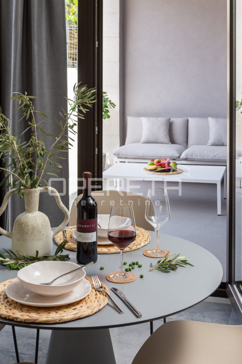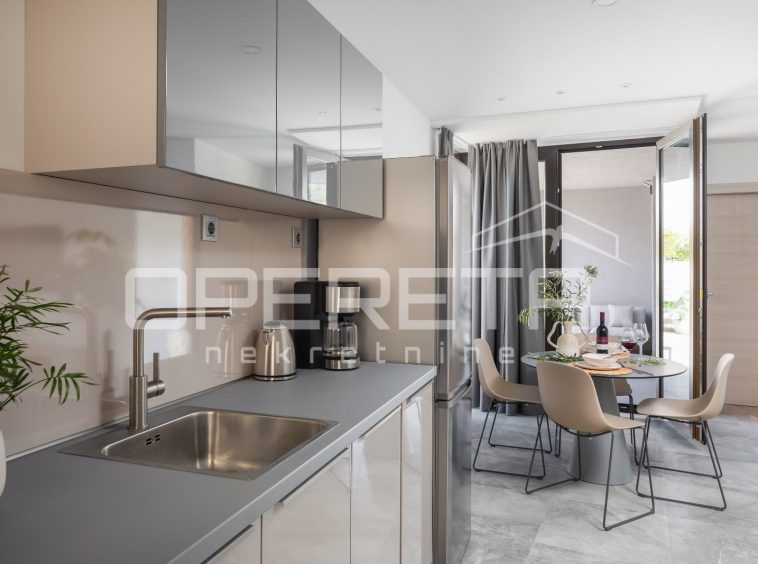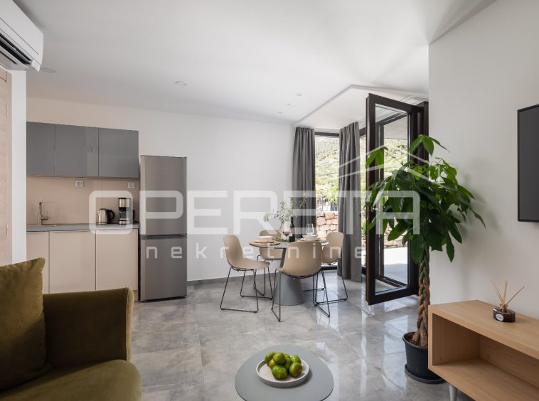In a prime location in Komiža, an apartment is for sale on the ground floor of an urban villa with a total net area of 41.40 m2. The apartment consists of an entrance hall, kitchen with dining room and living room, bedroom, bathroom and storage room. The apartment also has an exit to a loggia with a total calculated area of 8.3 m2. The apartment is luxuriously and modernly furnished and represents a rare opportunity to live in such a pleasant oasis.