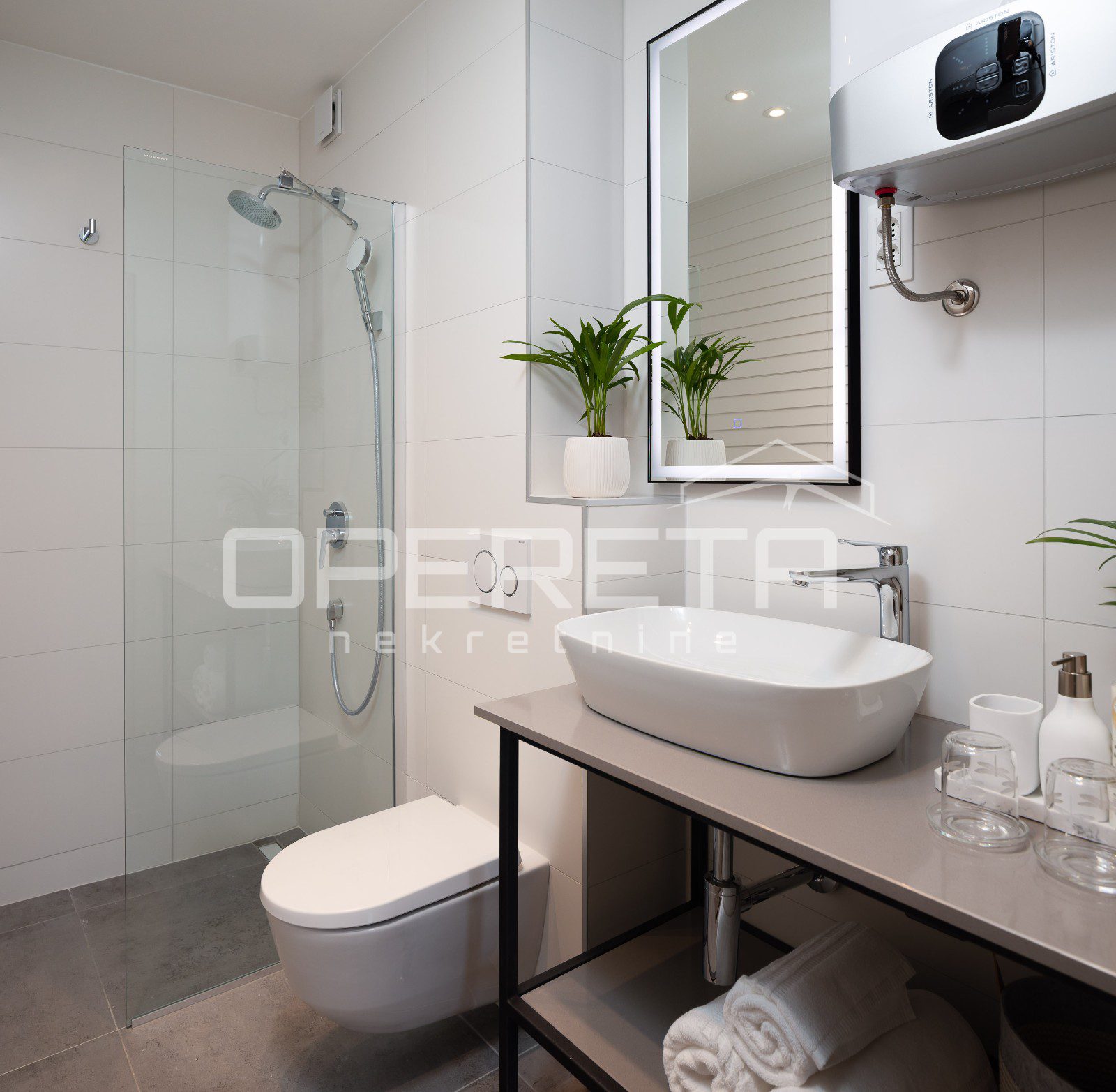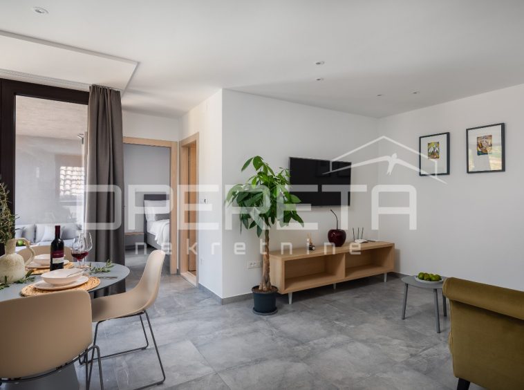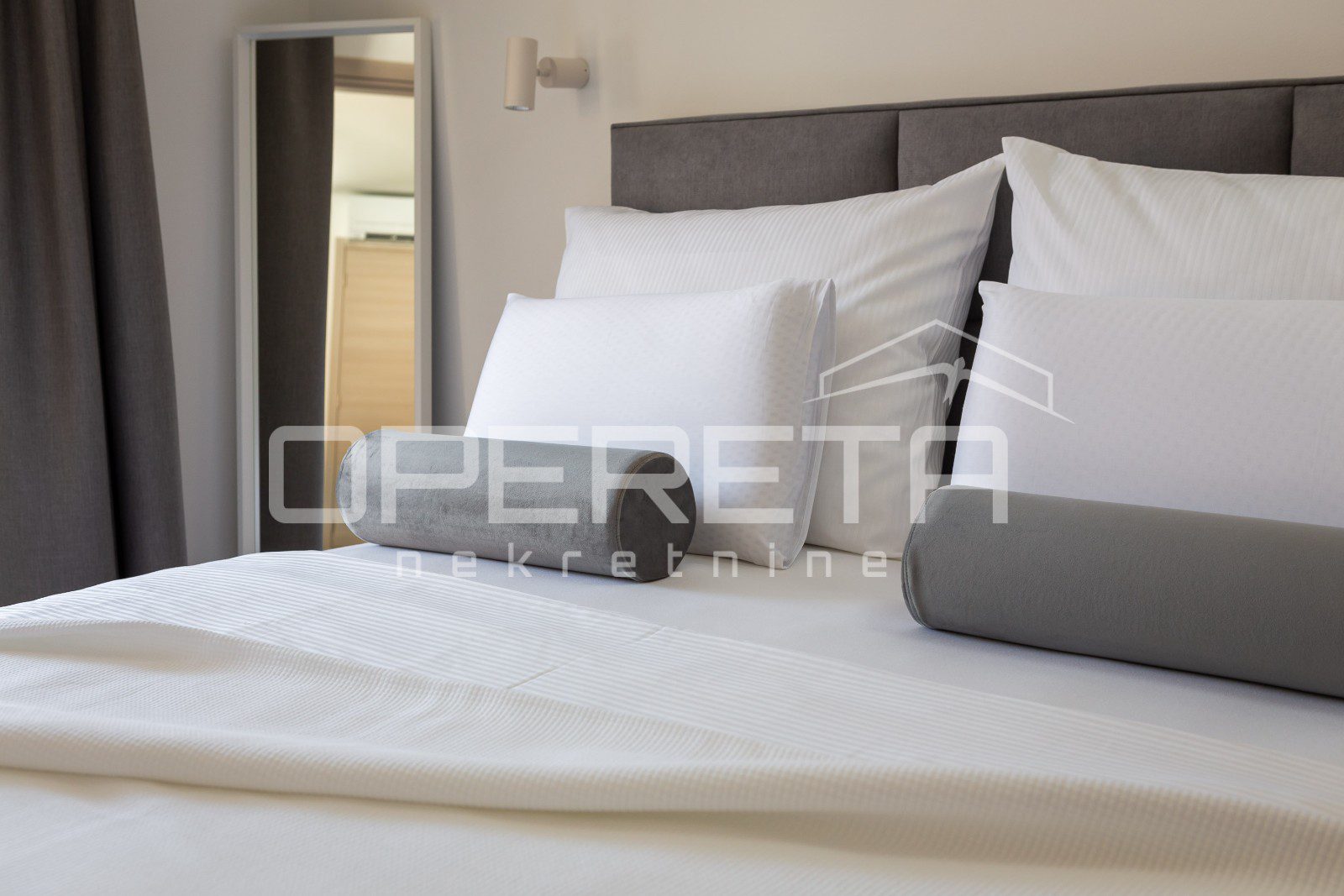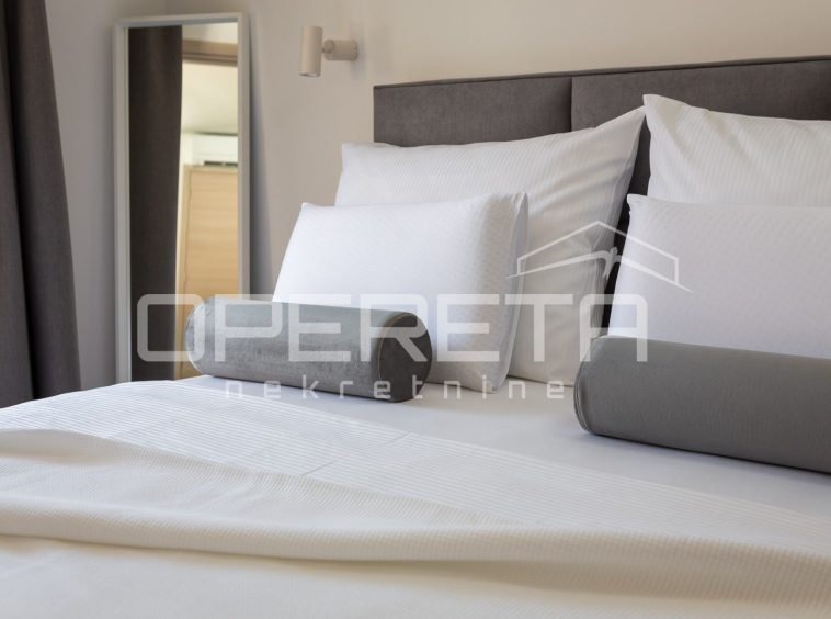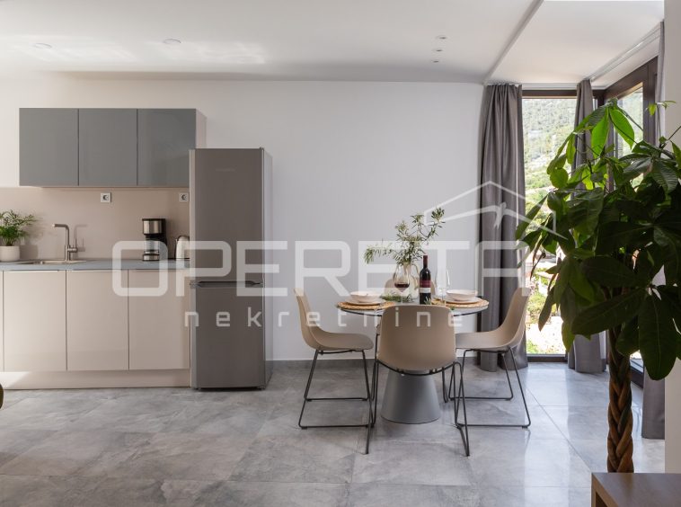 From our offer we highlight a beautiful modern apartment on the first floor of an urban villa with a total net area of 39.40 m2. The apartment consists of an entrance hall, kitchen with dining room and living room, bedroom and bathroom. The apartment also has an exit to a loggia with a total calculated area of 8.3 m2. The apartment is luxuriously and modernly furnished and represents a rare opportunity to live in such a pleasant oasis.
