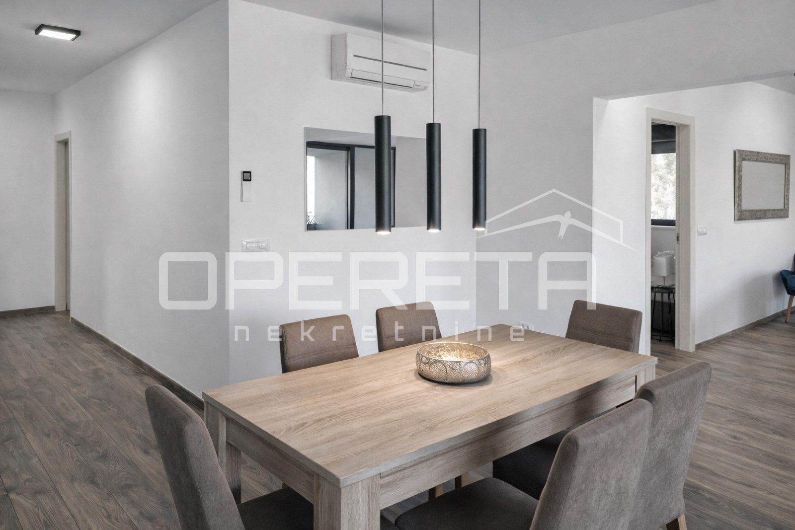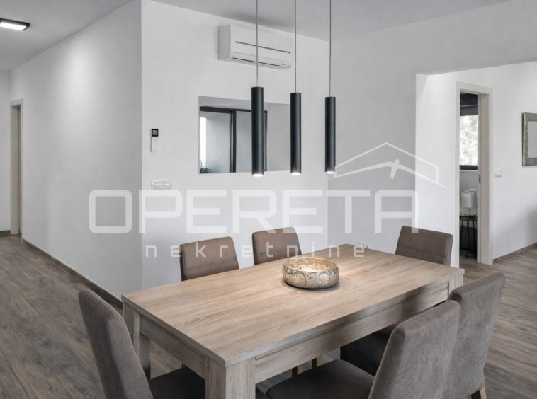 The apartment is equipped with air conditioning units in all rooms, ensuring an optimal climate year-round. It also has its own garage space with an elevator leading directly to the apartment, guaranteeing practicality and security for both owners and guests.
