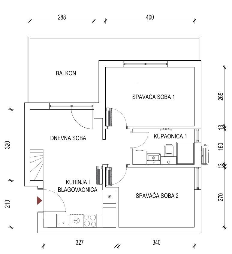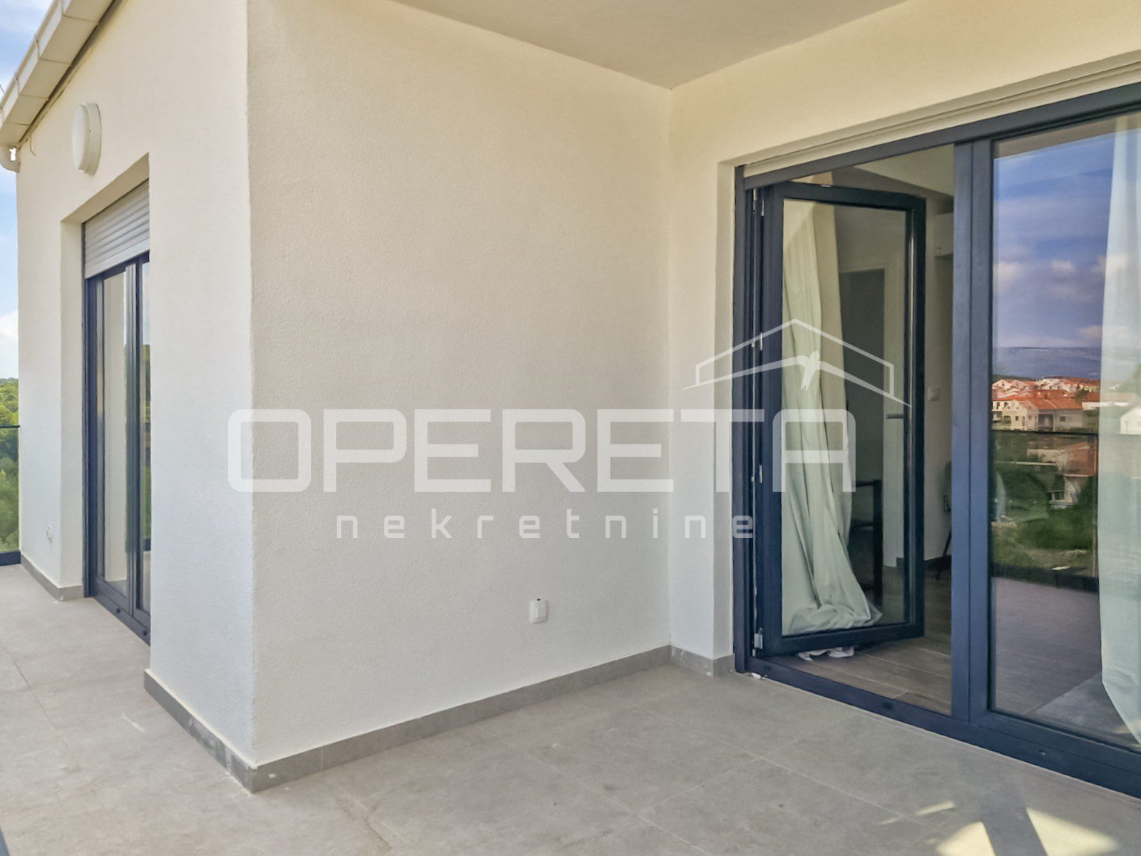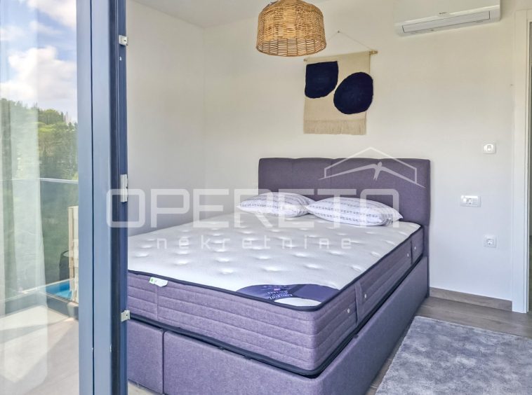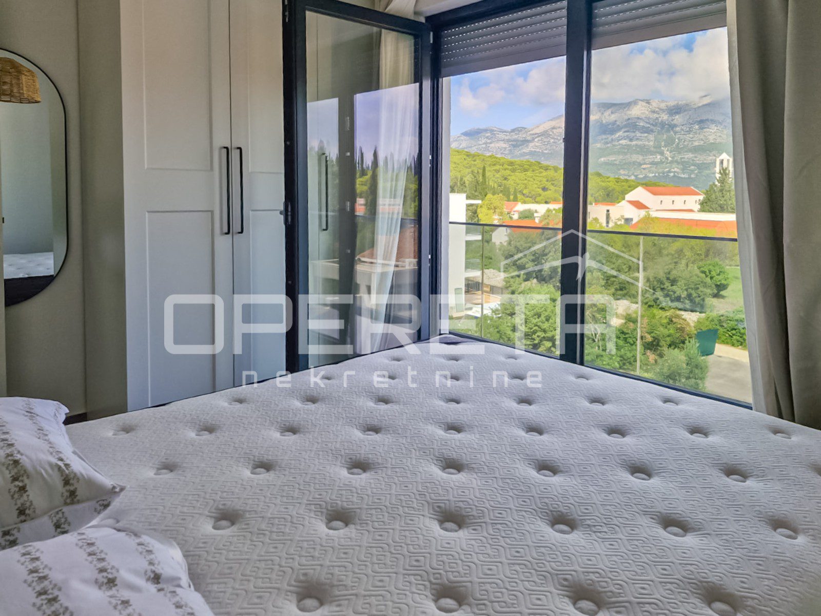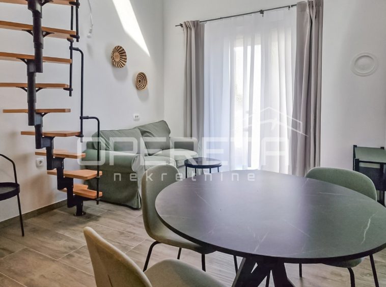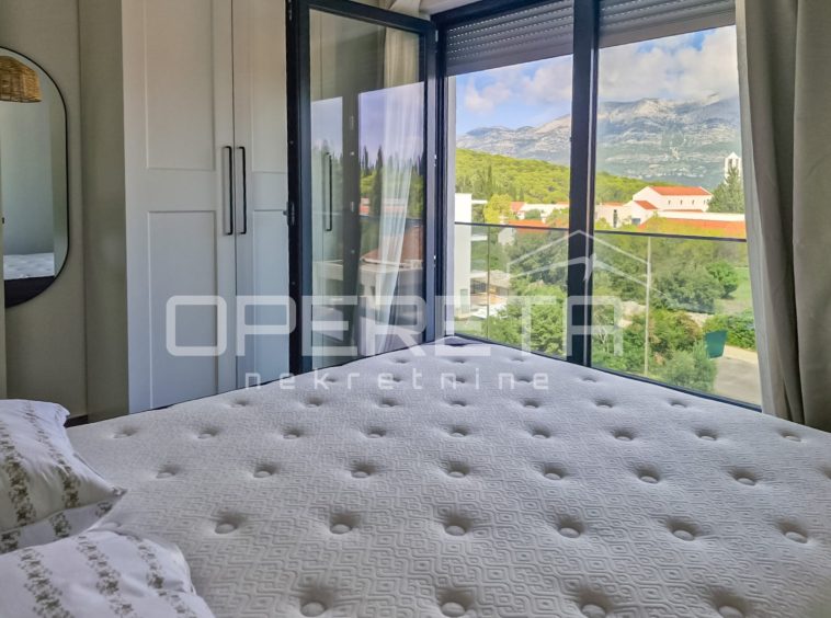 In a quiet location on Korčula, in a building completed in 2025, lies a modern apartment with a total area of 72.59 m². The apartment is spread over two levels and consists of a lower floor and a gallery, offering additional comfort and layout possibilities.