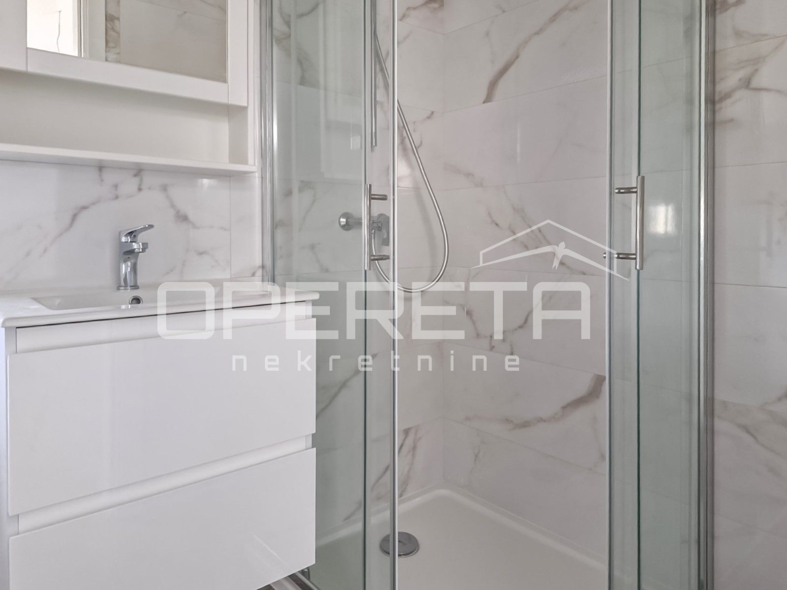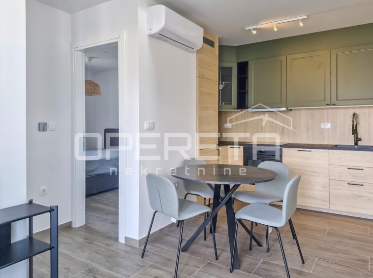 The apartment comes with a modern kitchen, quality flooring, air conditioning, and contemporary bathrooms.