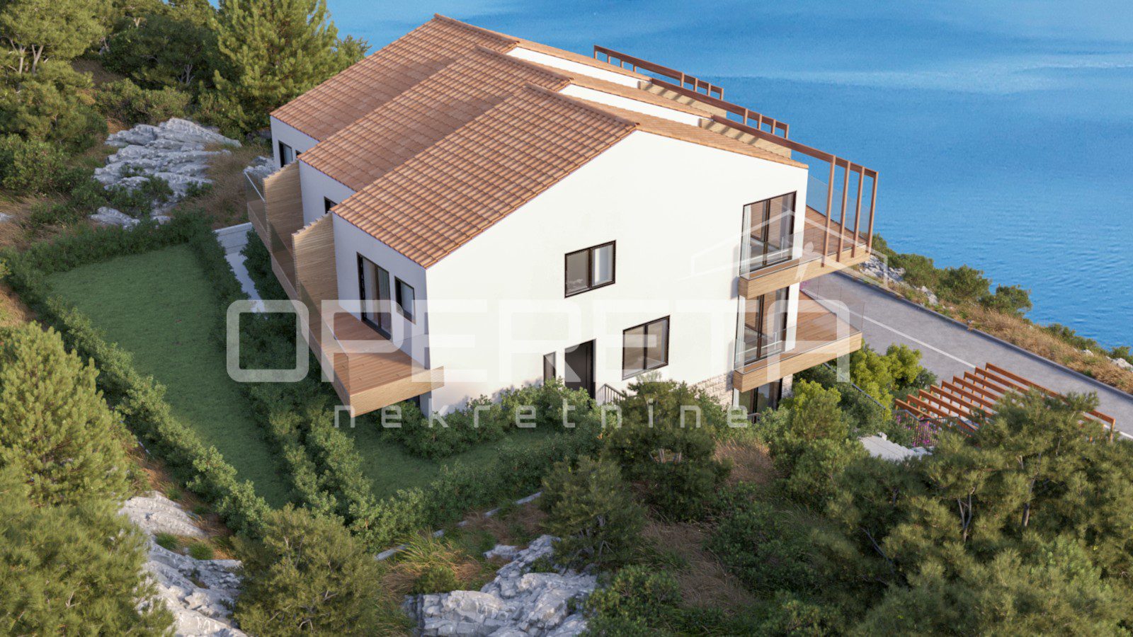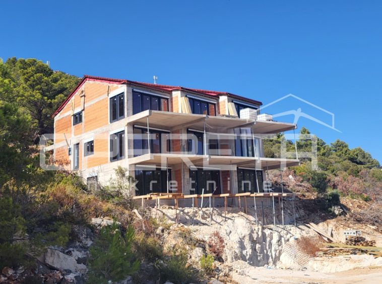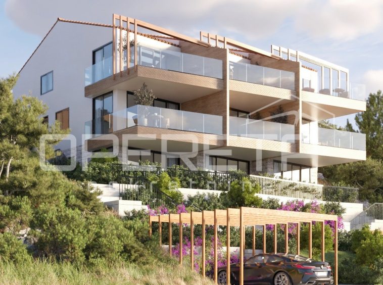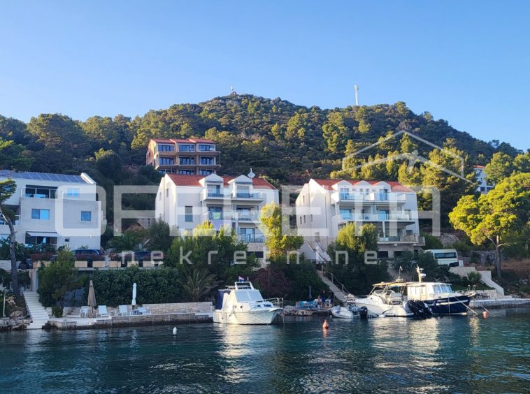 On the western side of the island of Lastovo, in the peaceful village of Pasadur, lies a duplex apartment within a contemporary new development comprising just four residential units. The project is located within the borders of the Lastovo Archipelago Nature Park, on the last building plot in the row—third line from the sea—just 70 meters in a straight line from the shore and around 350 meters of an easy walk to the nearest beach.