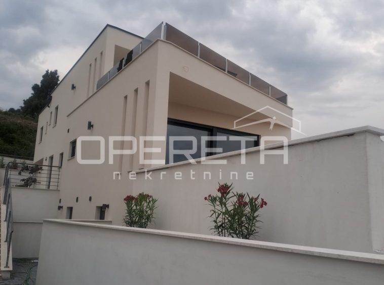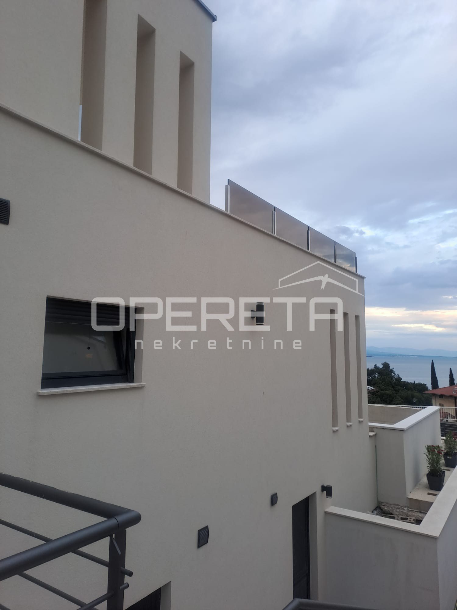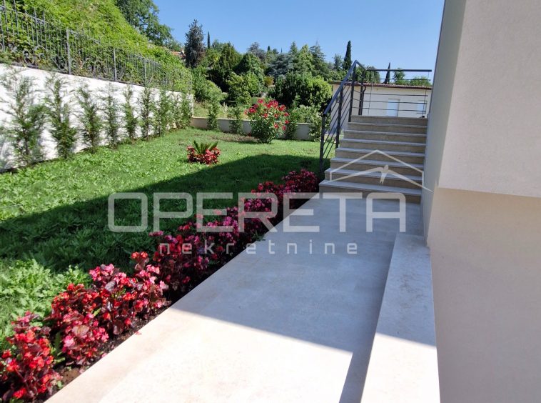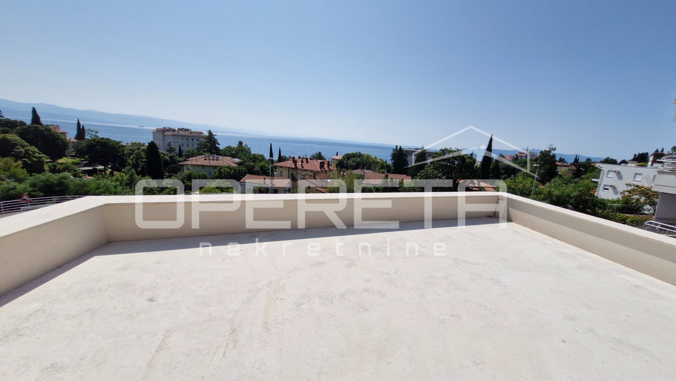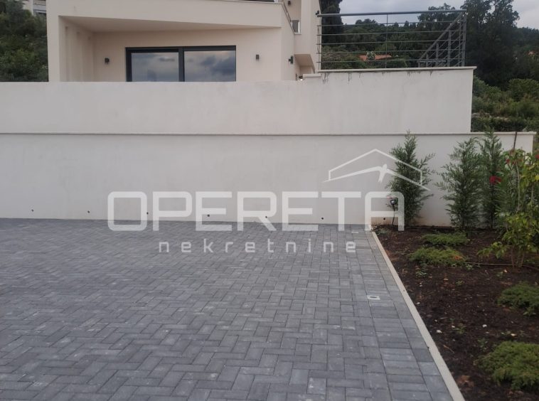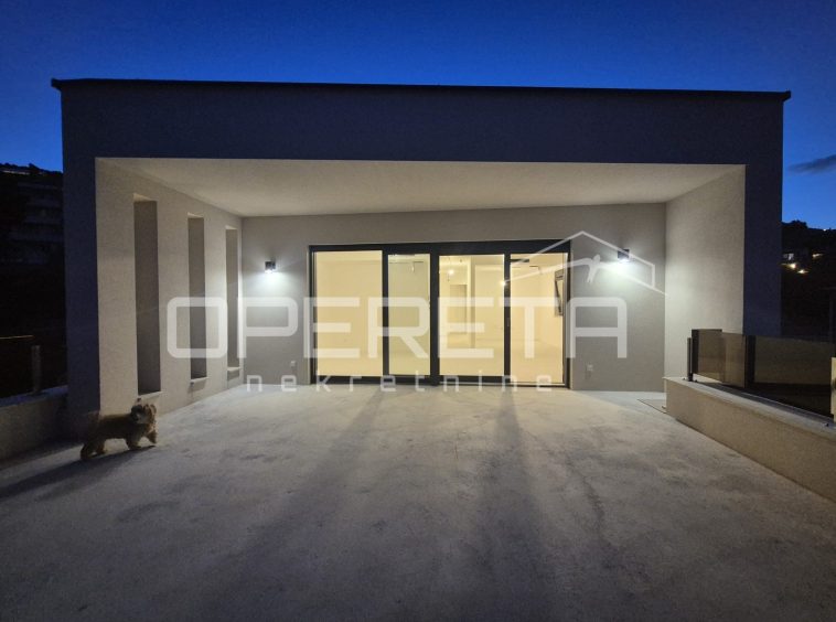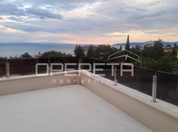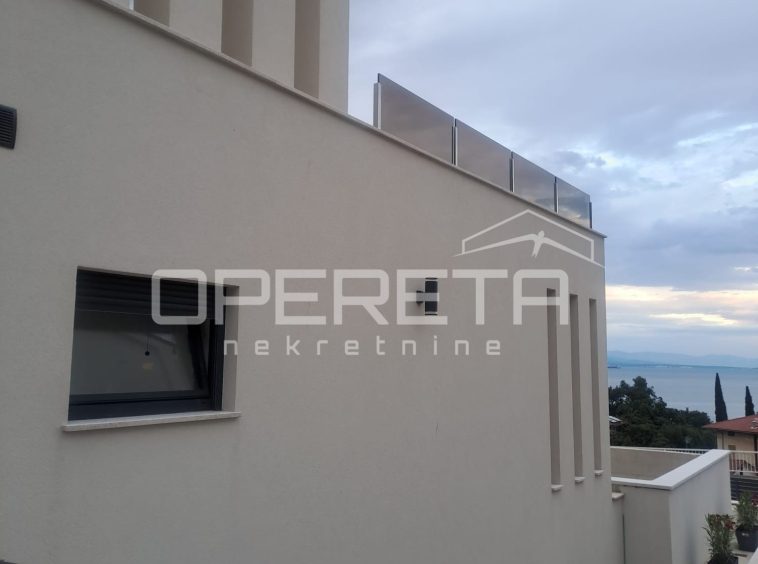For sale: exclusive 113 m² apartment in a modern villa with only 2 units, located in a quiet street in the center of Lovran. Features a private terrace, saltwater pool, sun deck, and sea views. Includes 2 master bedrooms with en-suite bathrooms, spacious open-plan living area, kitchen, dining room, and 15 m² storage. High shell & core phase – personalize finishes. Heat pump, underfloor heating, private parking. Fantastic location just 300 m from the sea and Lungomare promenade