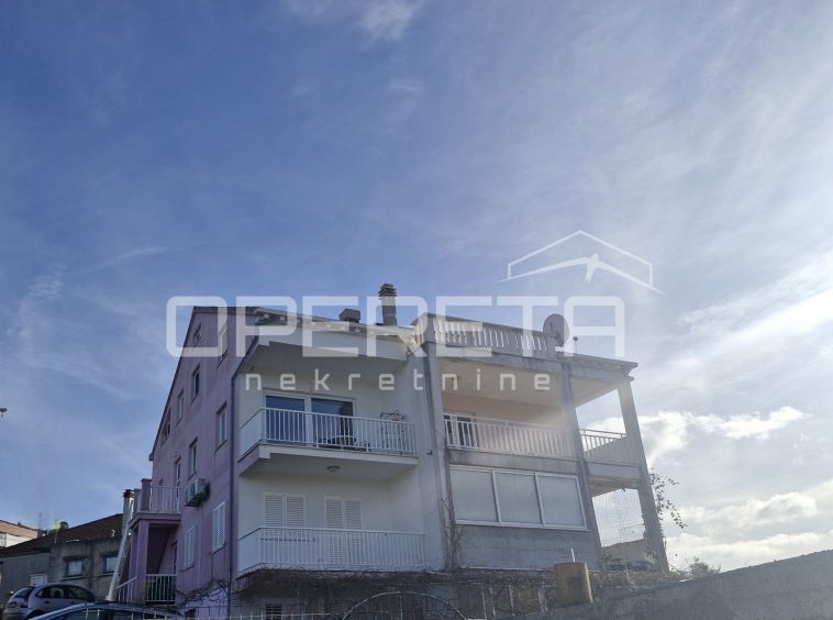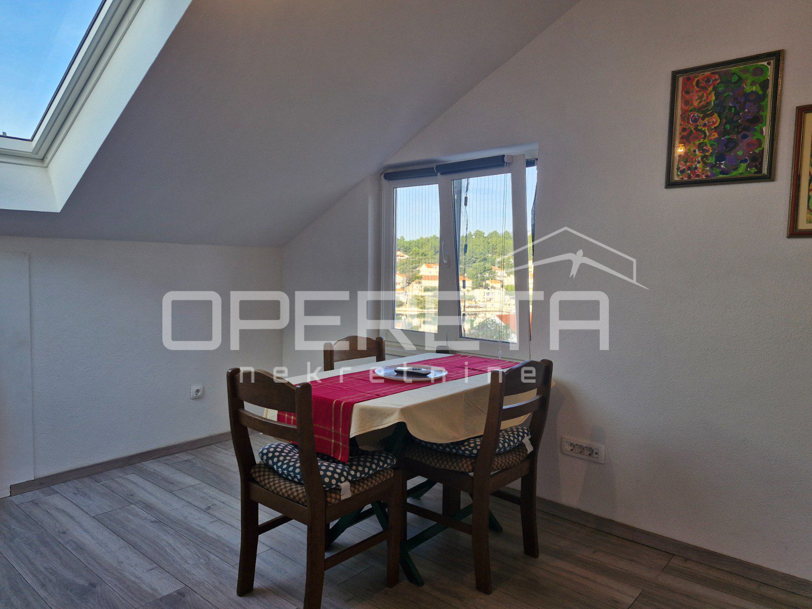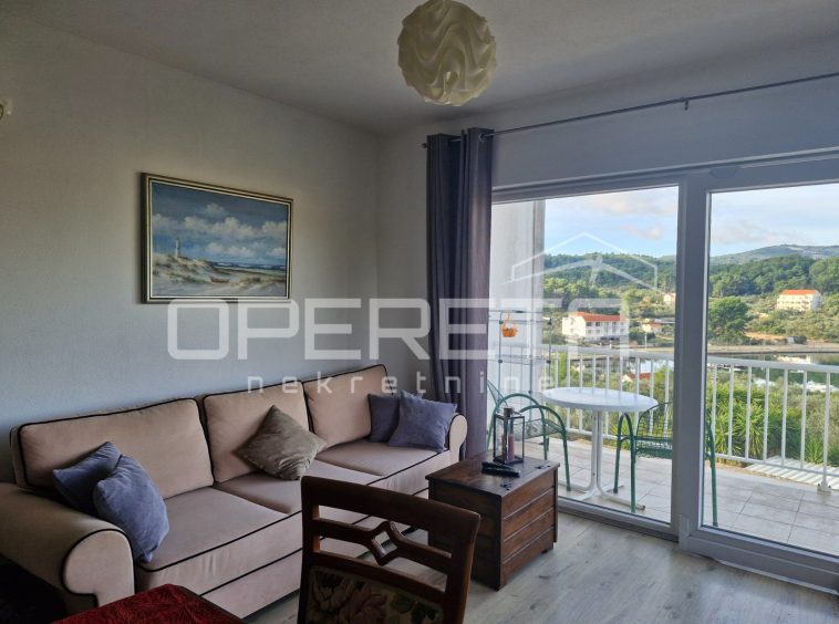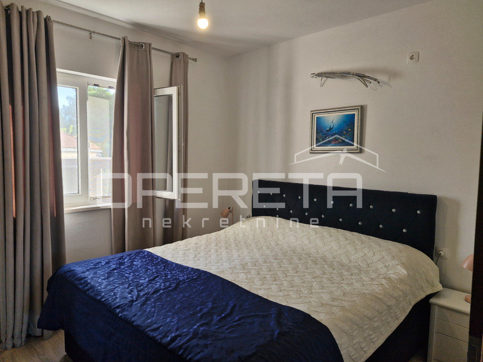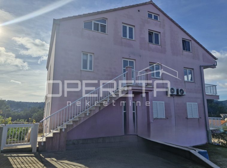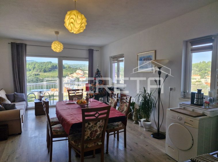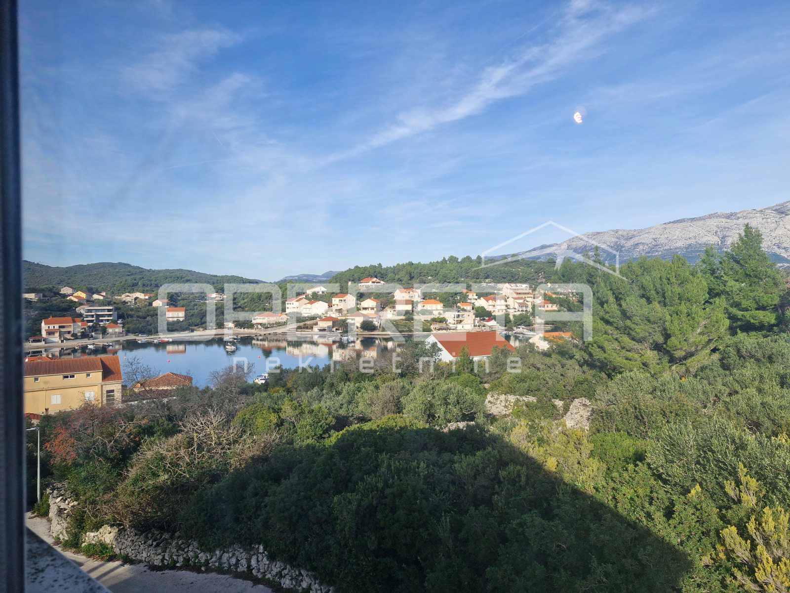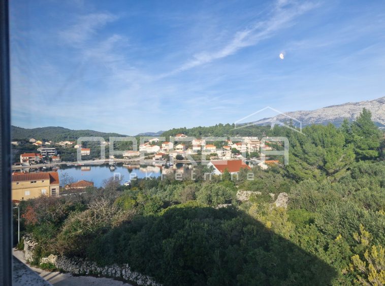 In a peaceful and attractive location in Lumbarda on the island of Korčula, a two-level residential property is offered for sale, situated in a smaller semi-detached building with an open view of the sea and the bay. The well-known sandy beaches of Pržina and Bilin Žal are approximately 3 km away, while the town center can be reached by a pleasant seaside walk of about fifteen minutes. The town of Korčula is located around 5 km away.