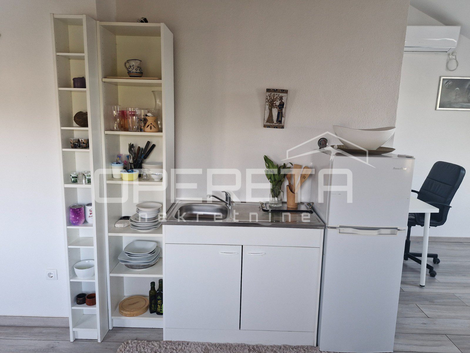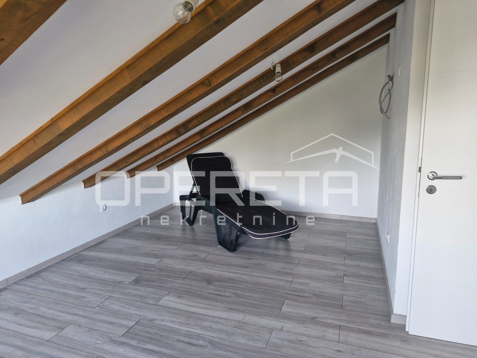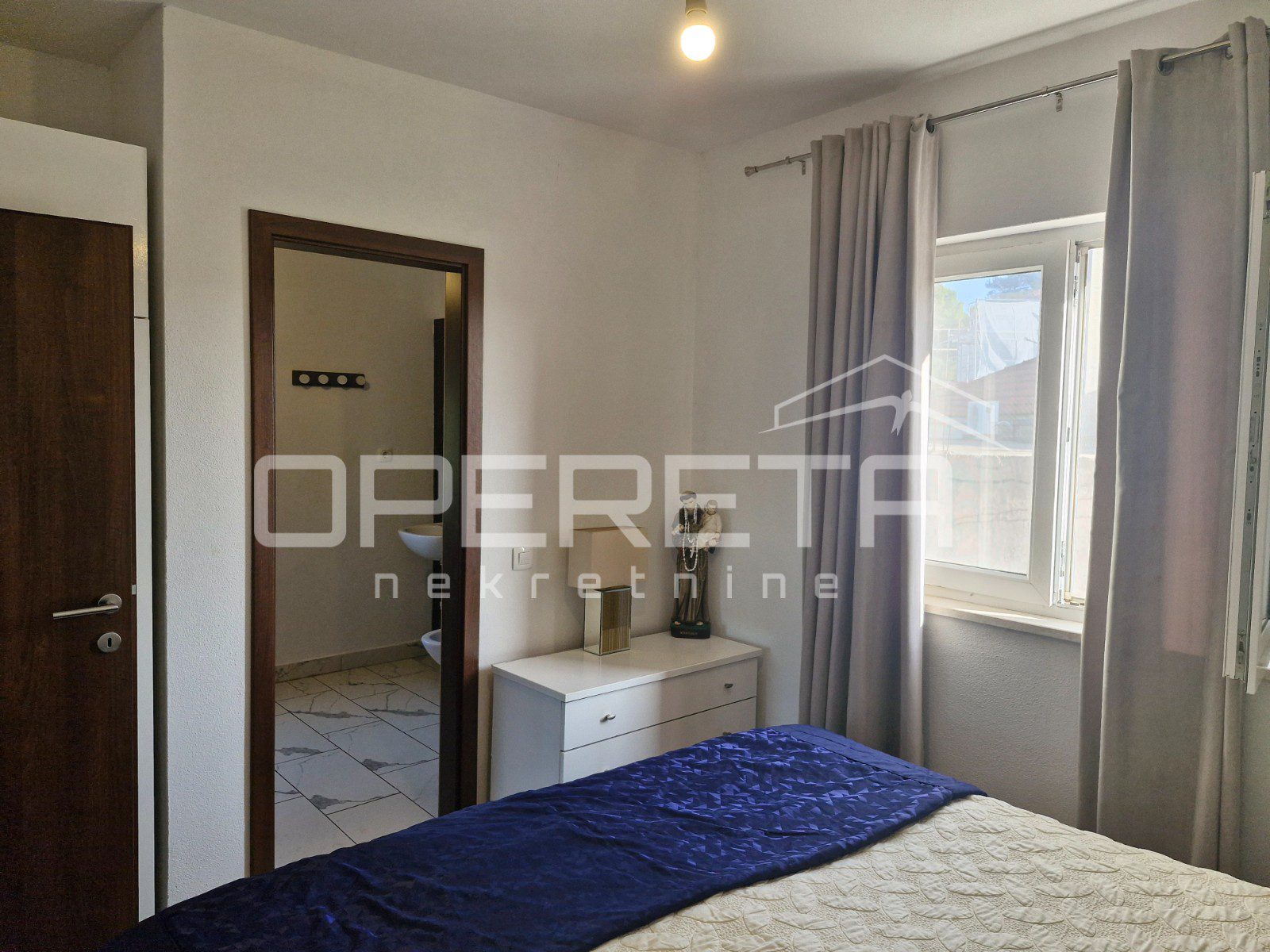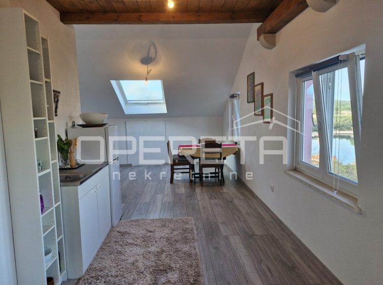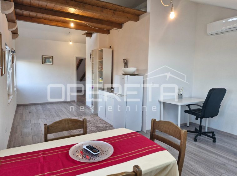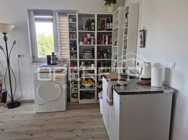 The lower level consists of a living room with kitchen, a bedroom with en-suite bathroom, an additional guest toilet and a balcony. The upper level features a living area with kitchen, a bedroom, a bathroom, a storage room and a gallery suitable for an additional bedroom or a multipurpose space. The property is move-in ready and fully functional, while certain areas are left in a final finishing stage, allowing the future owner to complete them according to personal preferences.