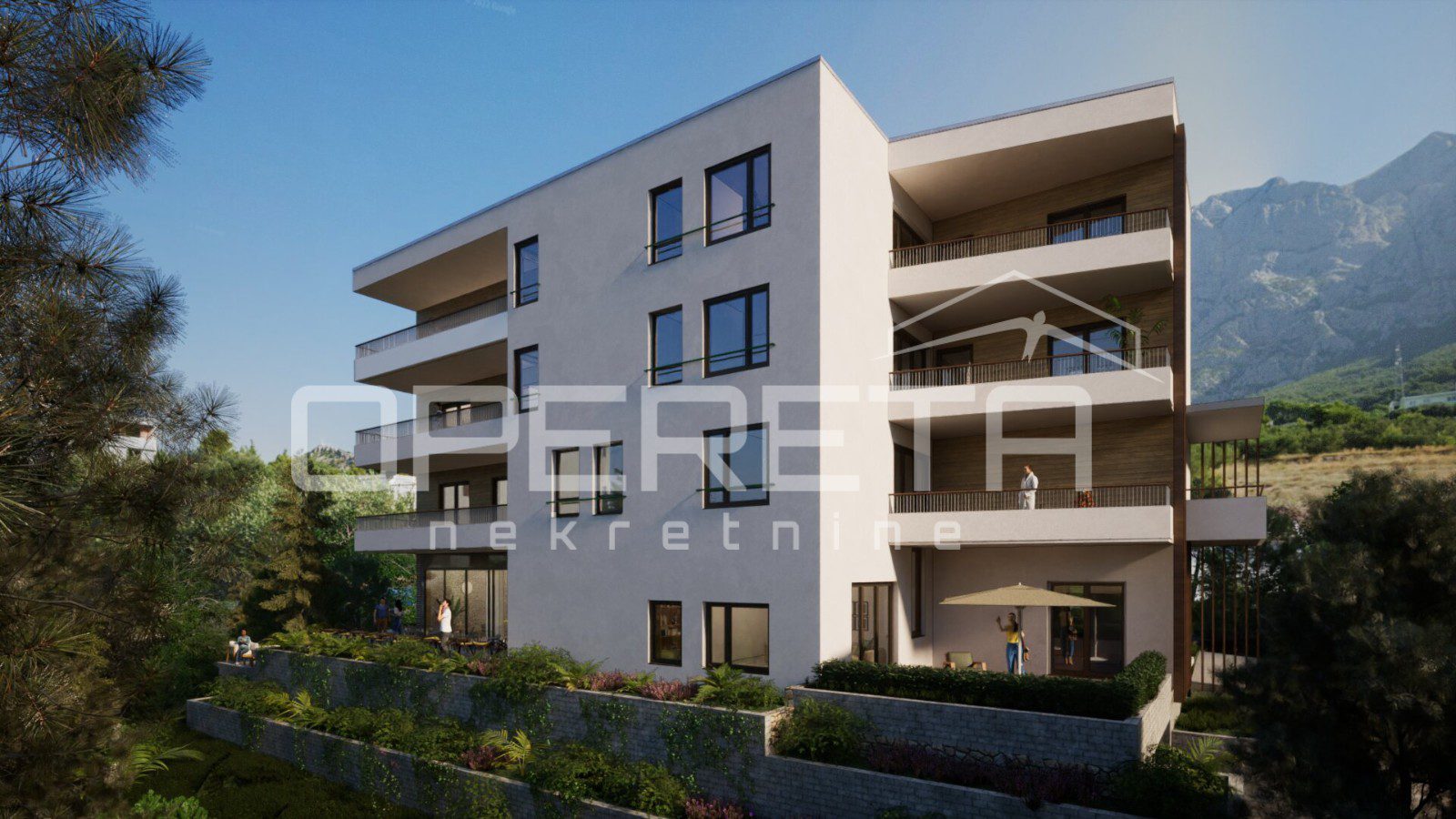 Situated in an elevated position in a quiet, family-friendly area of Makarska, this apartment has a total surface area of 57.51 m² and is located on the first floor of a modern residential building with an elevator. Its position ensures openness, plenty of natural light, and a pleasant sea view.