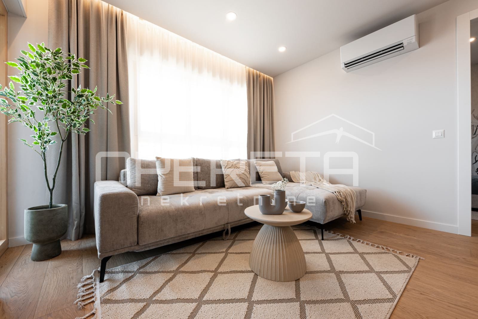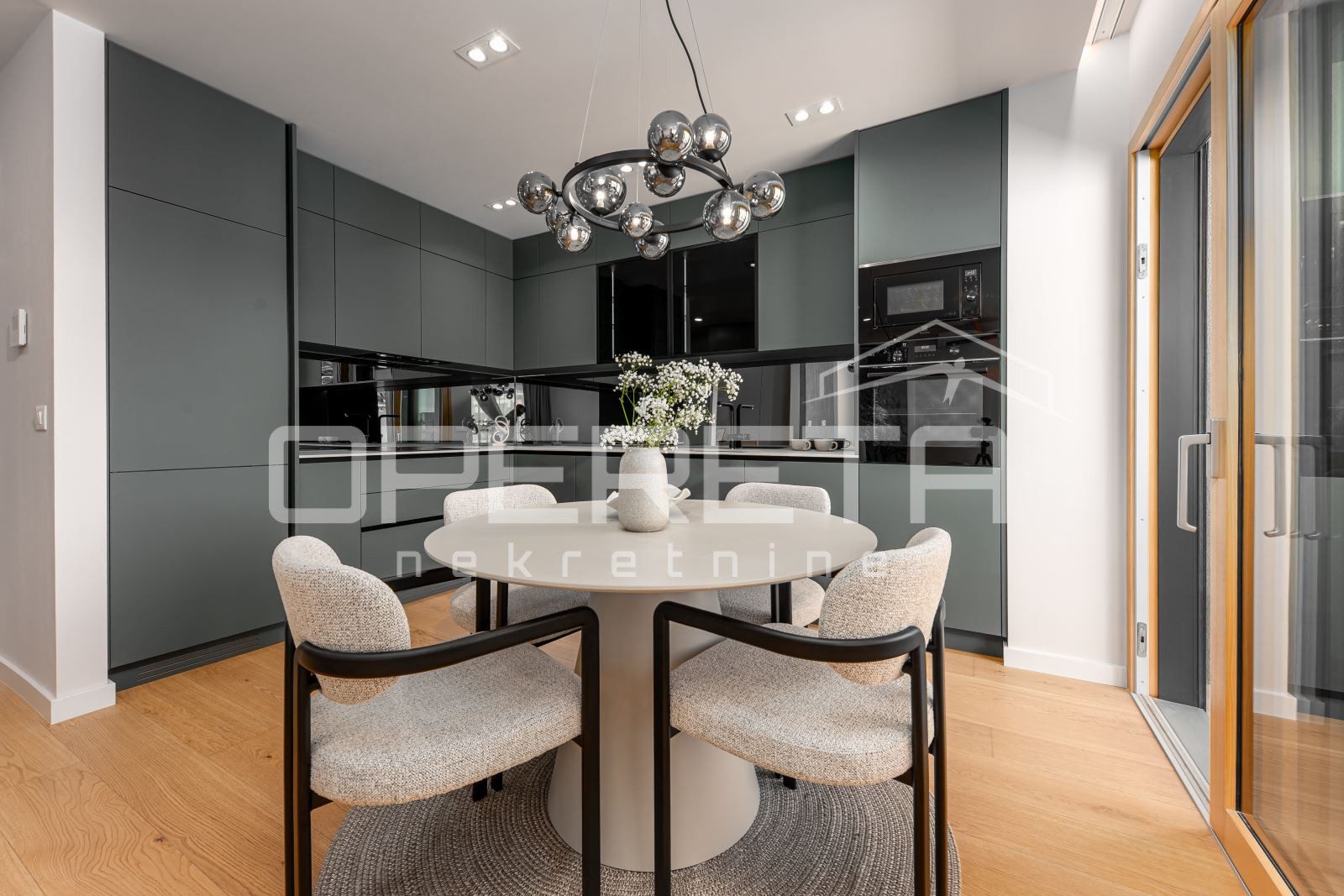 Enjoy privacy with secure anti-burglary doors and smart system management, all while maintaining the highest level of comfort and efficiency. The apartment has its own separate ventilation and water systems, as well as advanced technical innovations such as video intercoms, sliding walls that connect the interior with the exterior, and electrical installations with modern switches and sockets.
