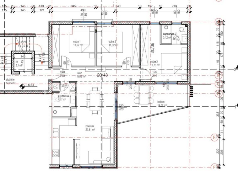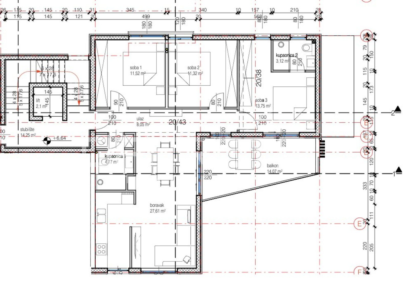 The apartment is situated on the second floor of the building and consists of three bedrooms, two bathrooms, a kitchen, and a spacious living room that forms the central part of the apartment. Through large sliding glass doors, the living area opens onto a generous terrace, which serves as a natural extension of the living space and an ideal place for outdoor relaxation. The terrace offers a beautiful, open view of the sea and the surrounding landscape, further enhancing the quality and uniqueness of this property.