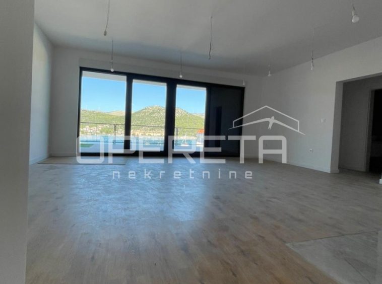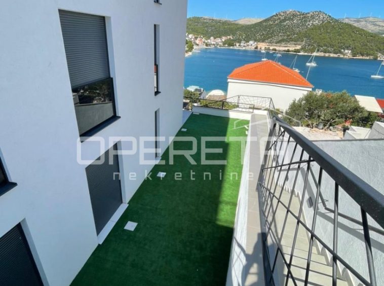 Just fifty meters from the sea, there is a spacious ground floor apartment with a total area of 107.64 m², offering comfort and a practical layout. The 9.08 m² loggia extends the living space to the outside and is ideal for morning coffee or an evening rest in the fresh air. The 84.32 m² garden offers the possibility of creating a private green oasis, a space for children to play or a quiet corner for family gatherings and socializing with friends.