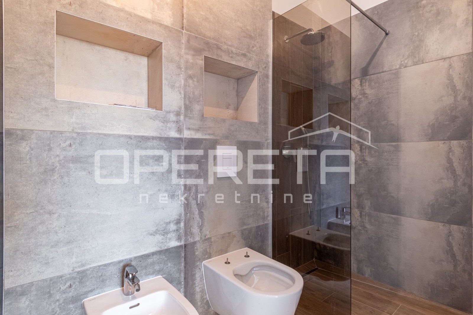 There is a Mitsubishi air conditioner in each room, electric underfloor heating has been implemented throughout the entire apartment with thermostats for regulation in each room.