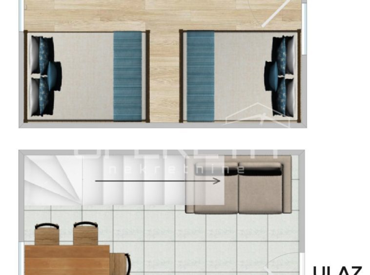 For sale is a terraced house located in the very center of Medulin, with a total net area of ​​45 m2. The house is spread over two floors, with a floor area of ​​26 m2.