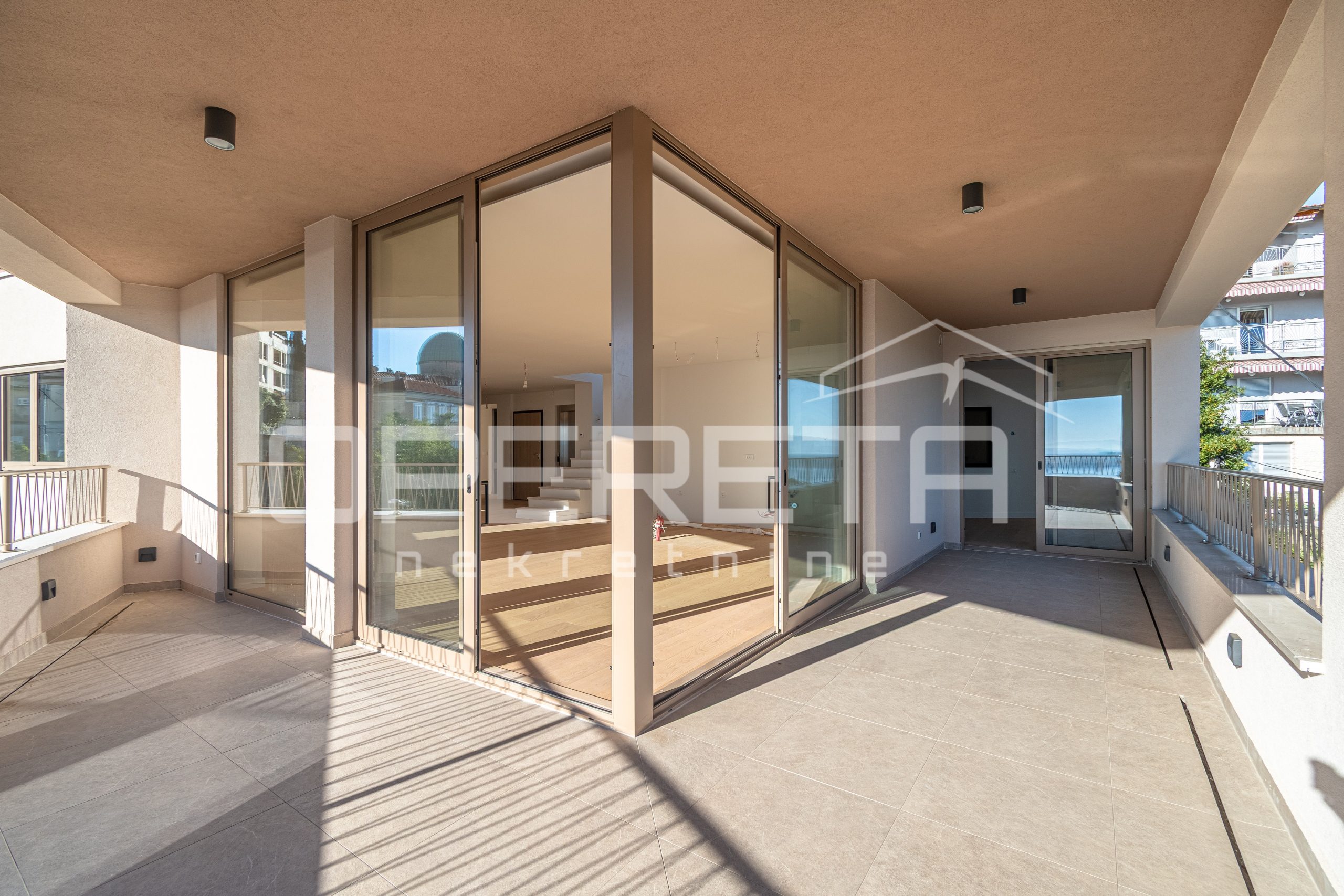 In addition, the apartment has access to a roof window/staircase area and a spacious open terrace with a swimming pool on the rooftop, with a total area of 163.80 m², offering a magnificent view of the sea and the entire city of Opatija.