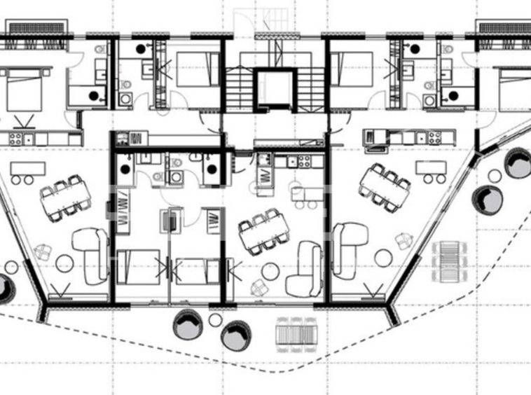 The project consists of only ten carefully designed residential units, ensuring a high level of privacy, exclusivity, and comfort. The terraced structure follows the natural slope of the land, allowing each apartment to enjoy maximum sunlight, privacy, and panoramic views of Kvarner Bay. The apartment exudes contemporary elegance with refined architectural details – large glass walls blur the boundary between interior and exterior spaces, while the curved terraces and covered outdoor areas create a perfect year-round living experience.