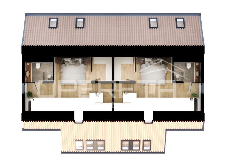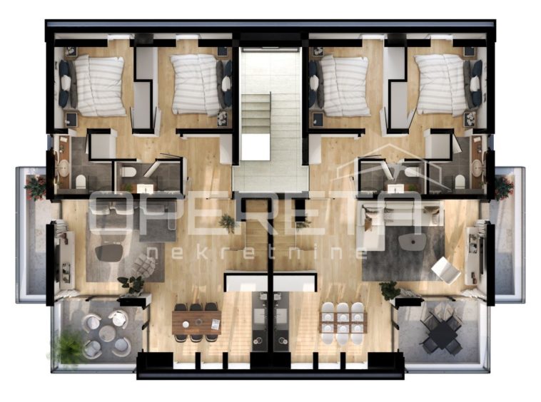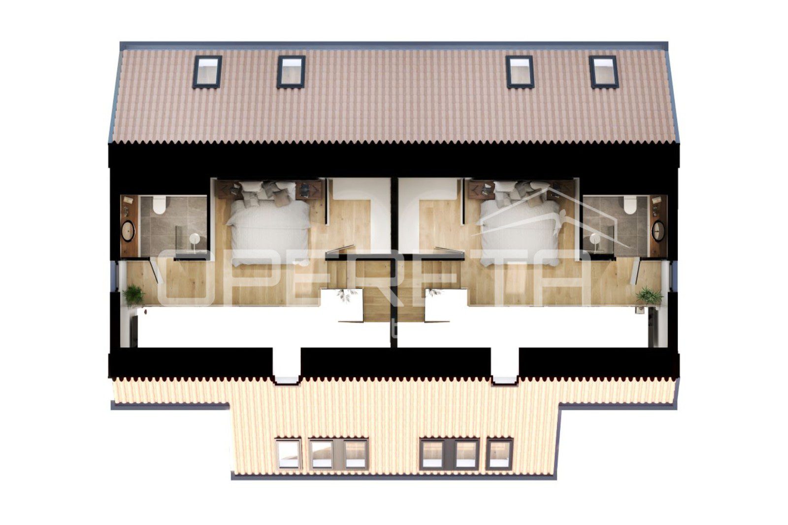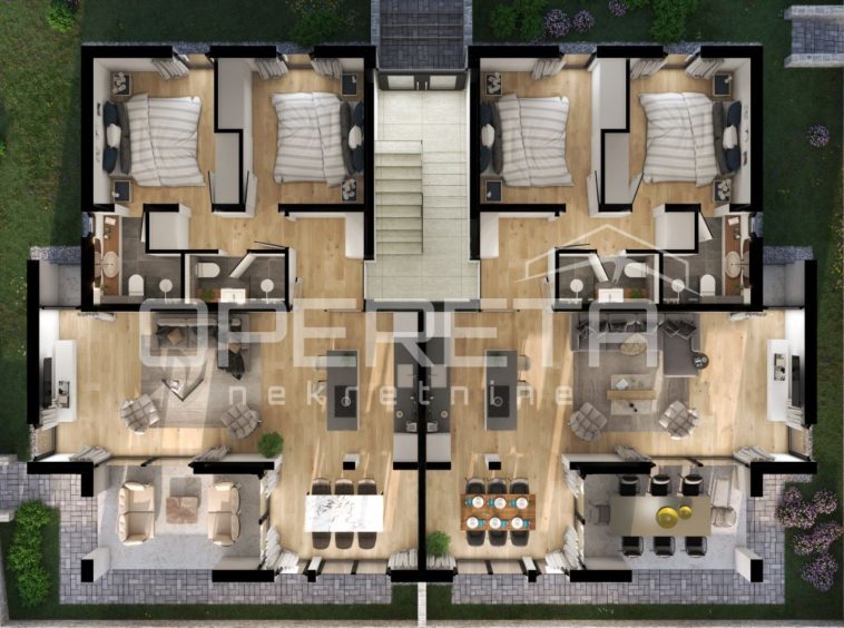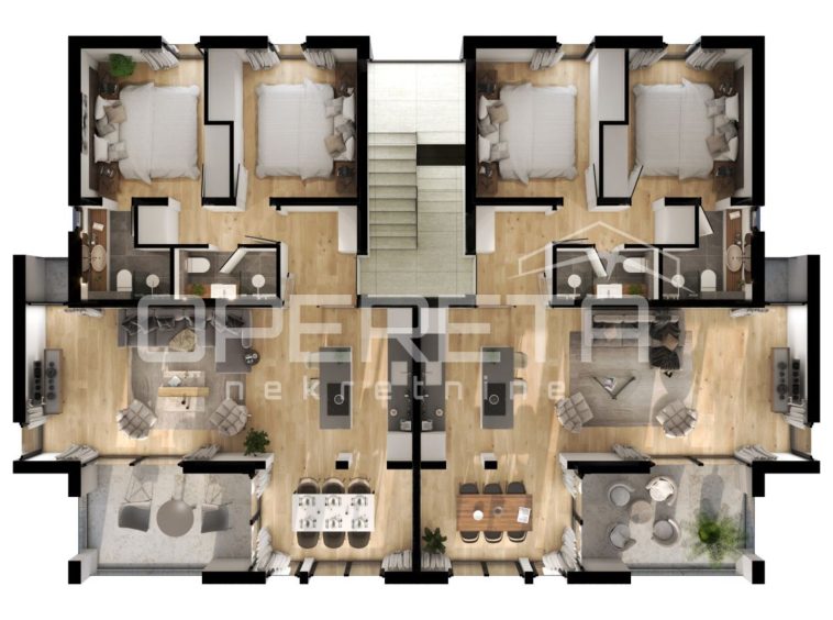 Residents have their own parking space, and the quality of construction is evident in every detail – from advanced thermal and acoustic insulation, aluminum joinery with modern sliding systems, underfloor heating, to aesthetically designed exterior. The outdoor area is enriched with Mediterranean plants, an automatic irrigation system, and subtle evening lighting.