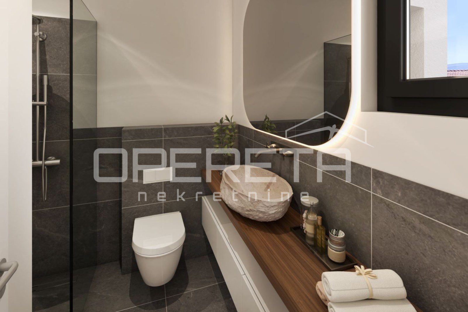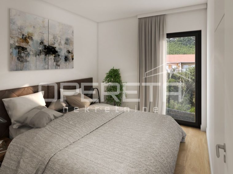 In a peaceful part of Orebić, a modern apartment in a newly built residence combines comfort, contemporary design and a touch of Mediterranean charm. With a total surface of 89 m², the apartment is located on the first floor and faces south, ensuring plenty of natural light throughout the day. The spacious living room is seamlessly connected to the kitchen and dining area, creating a harmonious space perfect for daily life and gatherings. The apartment offers two bedrooms, one with an en-suite bathroom, while the loggia and terraces provide an ideal setting for outdoor relaxation.