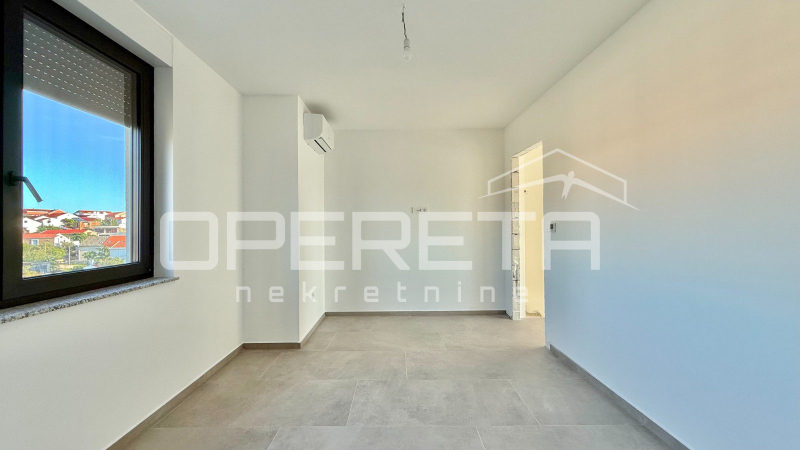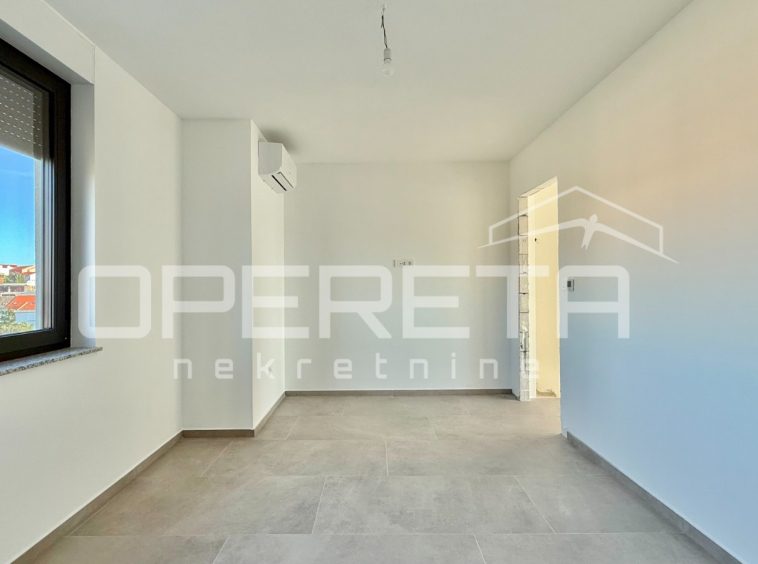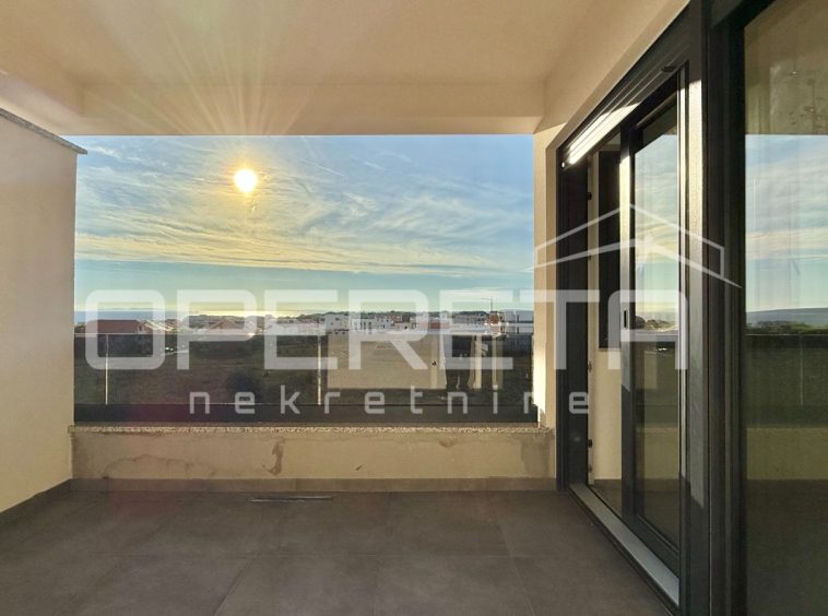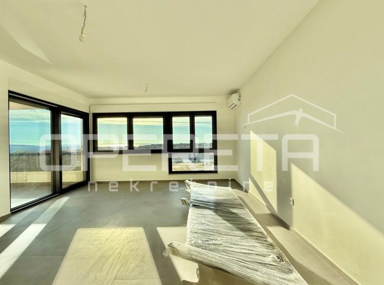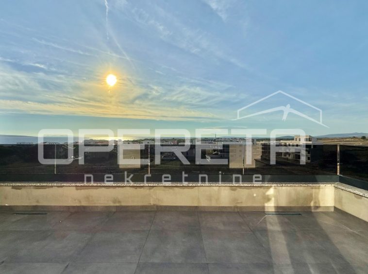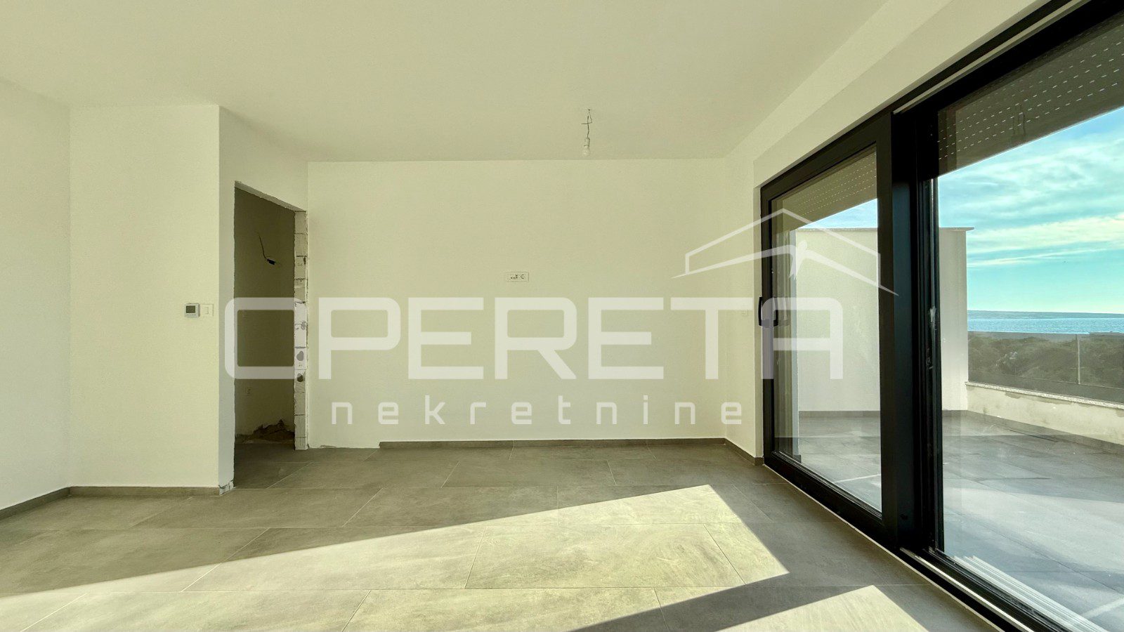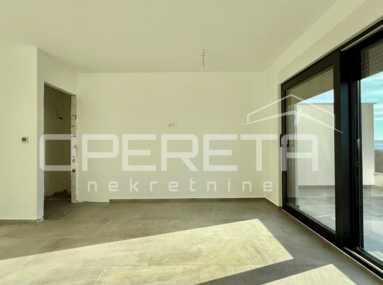 Apartment S8 consists of two bedrooms, a living room with a kitchen, a bathroom, and a large terrace.