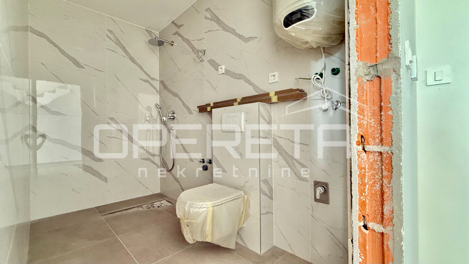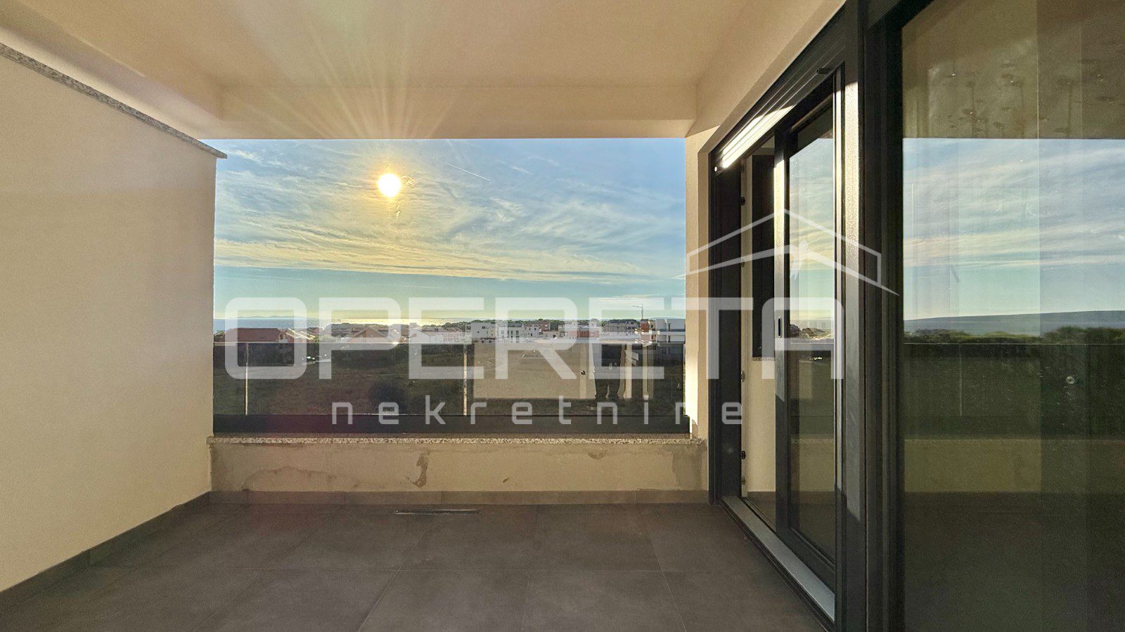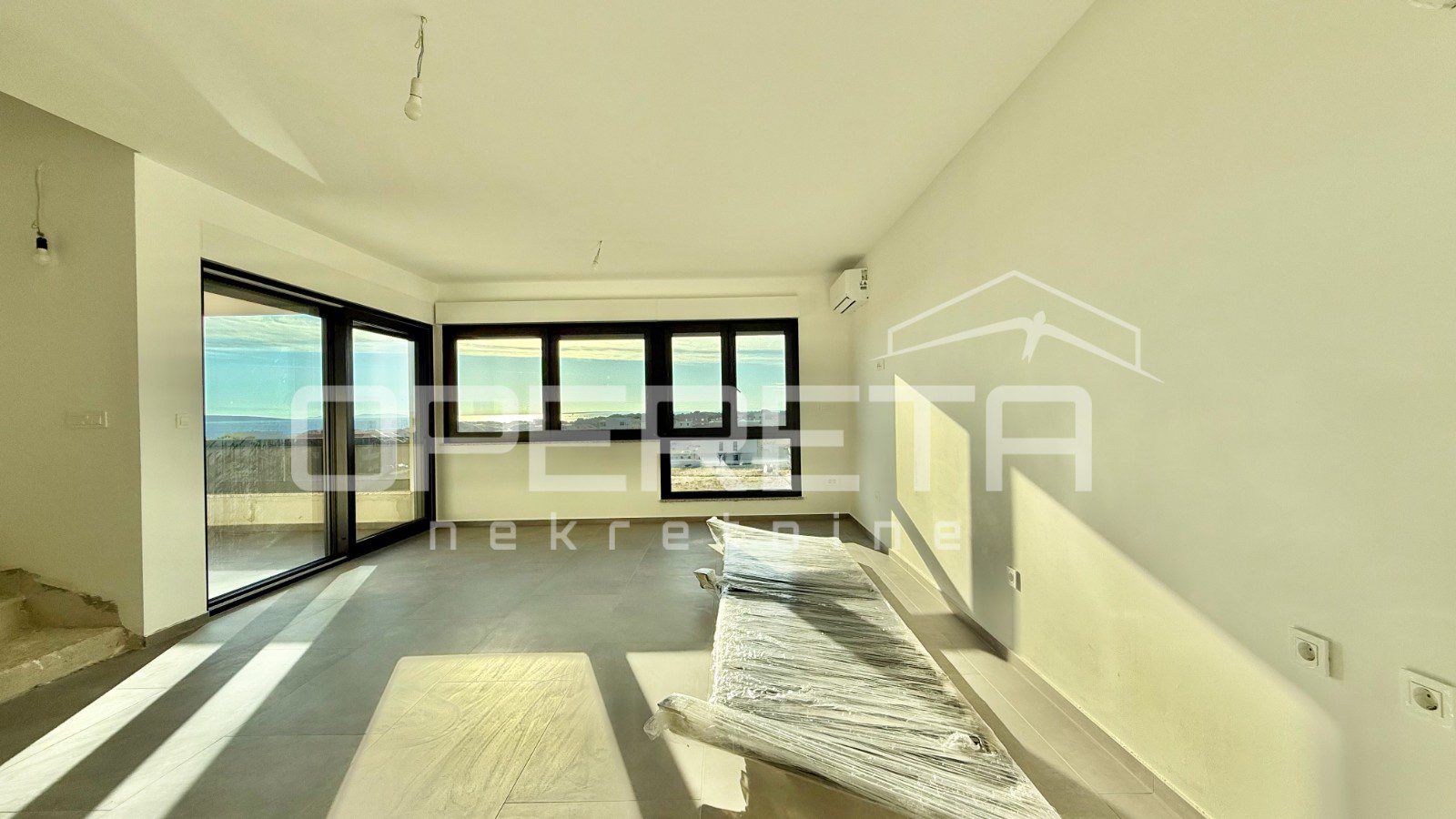 Apartment S8 consists of two bedrooms, a living room with a kitchen, a bathroom, and a large terrace.