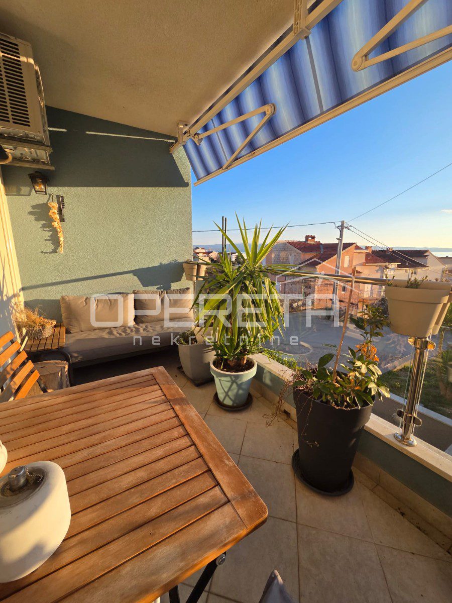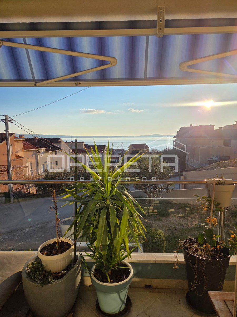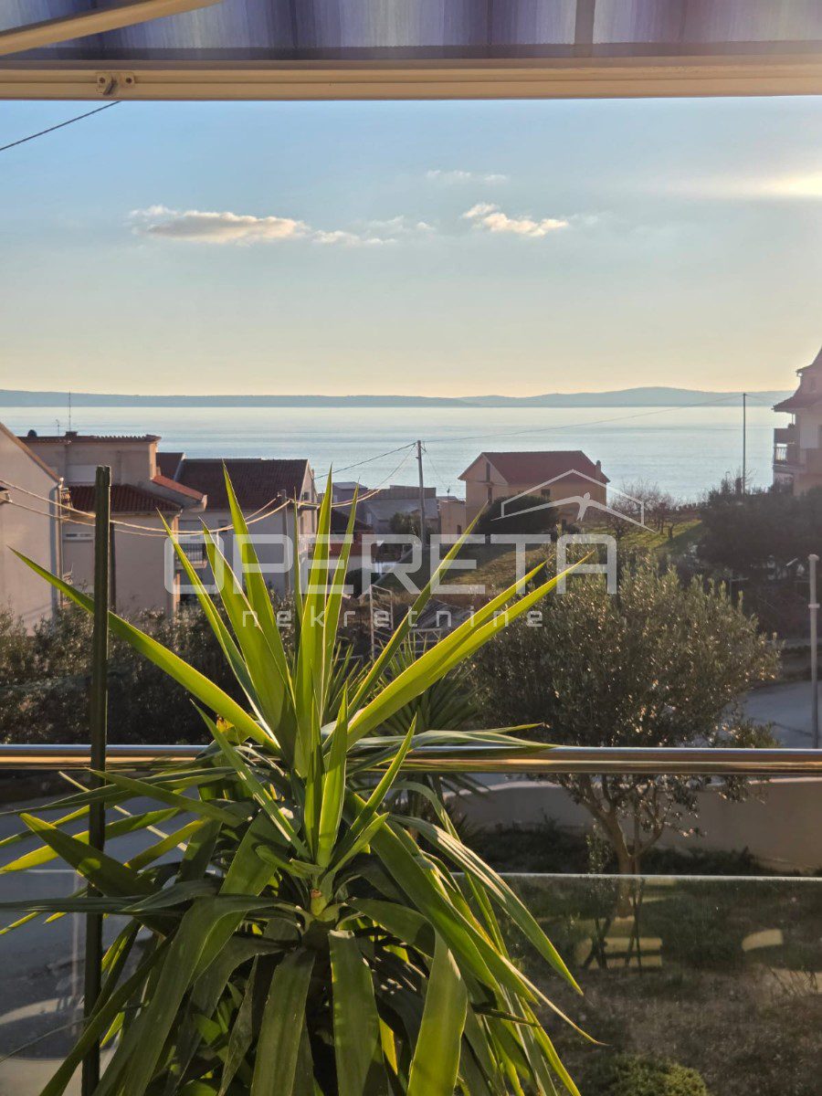 In an exceptional location in Donja Podstrana, just a few minutes’ walk from the sea and well-maintained beaches, this spacious and functionally laid-out three-bedroom apartment offers an unobstructed sea view. Situated on the first floor of a smaller residential building, the apartment occupies an independent position on a mezzanine level, with no immediate neighbors on the same level, providing additional privacy and peace.