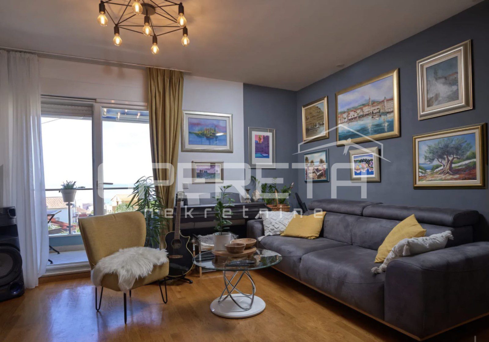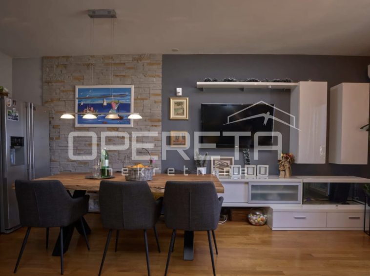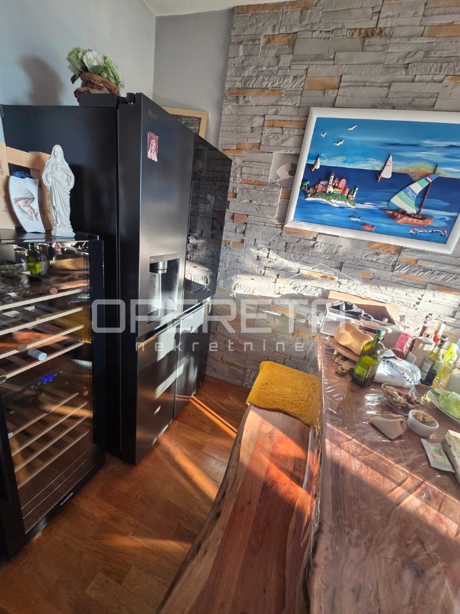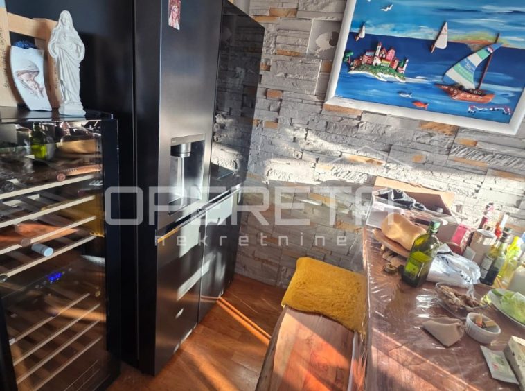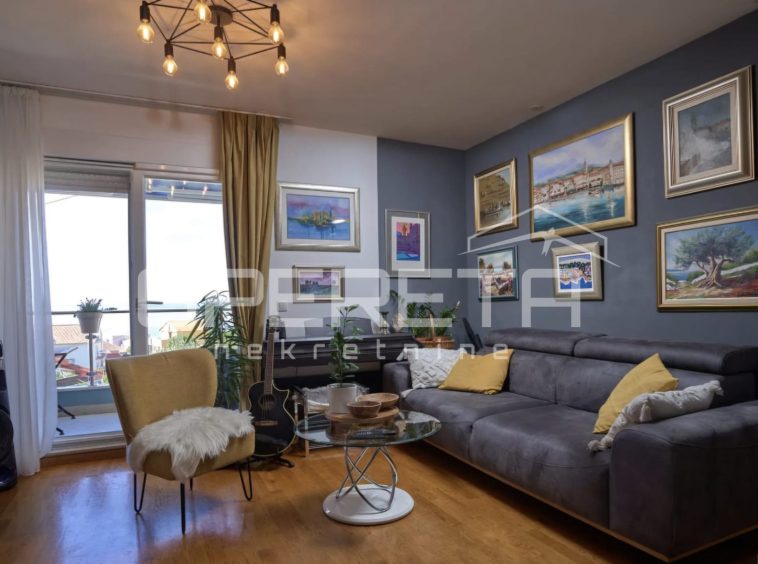 In an exceptional location in Donja Podstrana, just a few minutes’ walk from the sea and well-maintained beaches, this spacious and functionally laid-out three-bedroom apartment offers an unobstructed sea view. Situated on the first floor of a smaller residential building, the apartment occupies an independent position on a mezzanine level, with no immediate neighbors on the same level, providing additional privacy and peace.