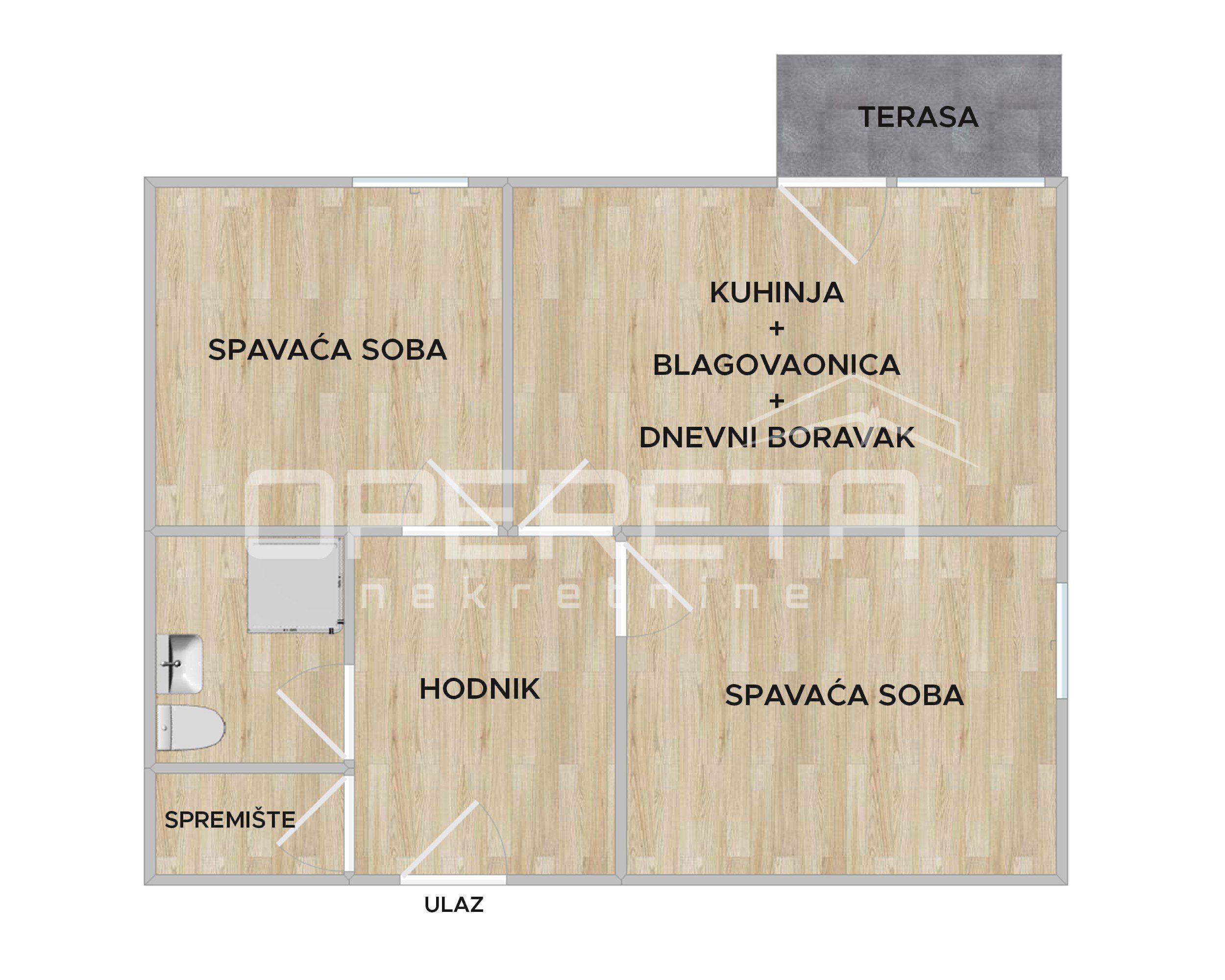 The apartment has an extremely functional layout that includes: a spacious entrance hall, a living room with a kitchen and dining room and access to a balcony, two bedrooms, a bathroom and a storage room. The apartment also comes with a storage room on the ground floor of the building.