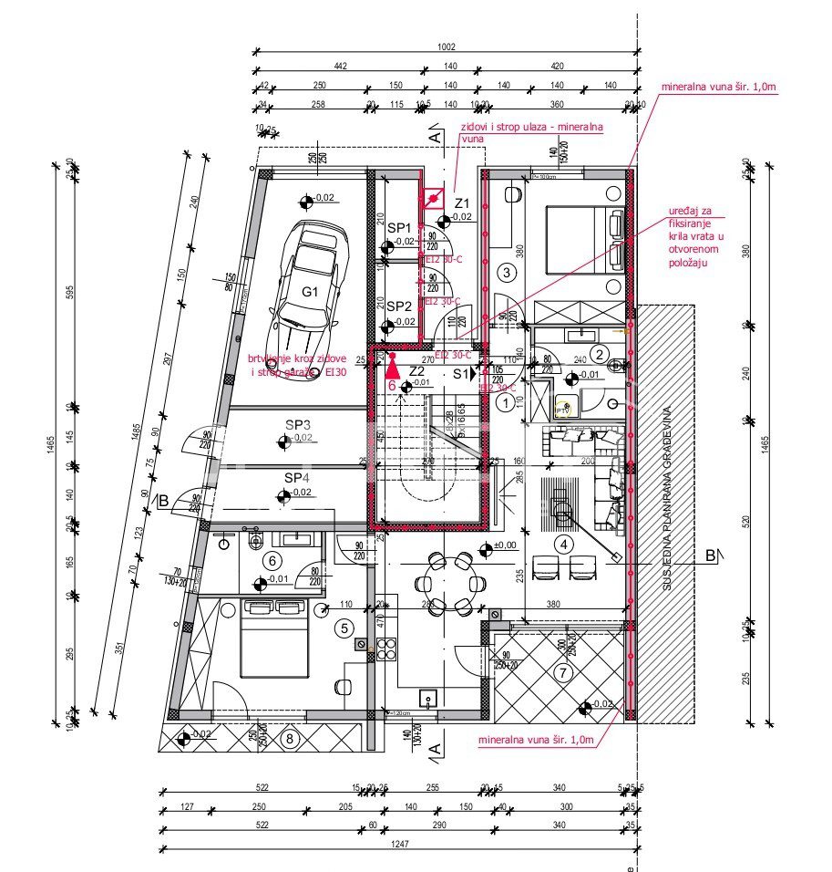 Built to the highest standards, with an A+ energy certificate, 10–15 cm thick wall insulation and 15 cm roof insulation, which ensures high energy efficiency and low utility costs. The interior joinery is wooden, while the exterior is high-quality PVC joinery.