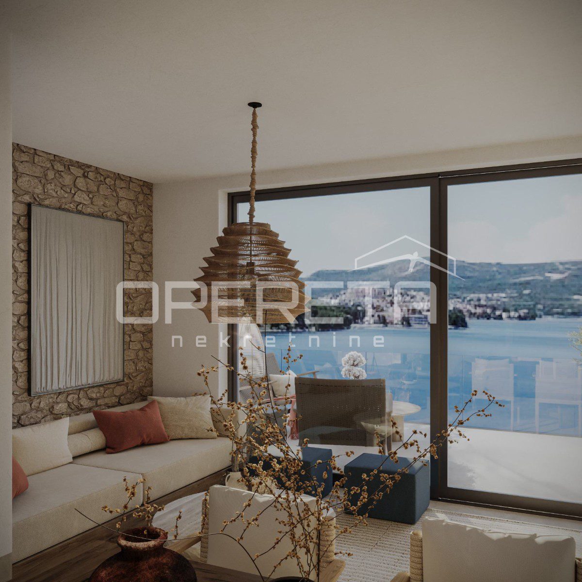 New development in Ražanj near Rogoznica – apartment with terrace and sea view, 70 m from the beach
