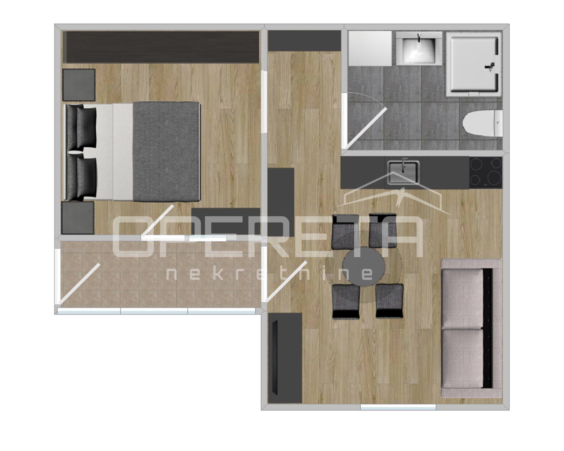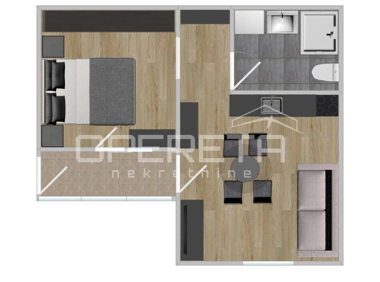It consists of a kitchen with dining room and living room, hallway, bedroom and bathroom. The apartment is completely renovated and fully furnished and is being sold as such.