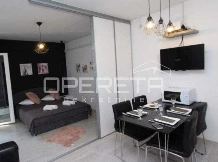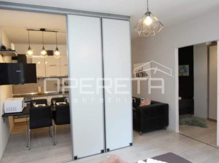 It consists of a hallway, living room with kitchen and dining room, bedroom, bathroom and balcony. The apartment is completely renovated and fully furnished and is being sold as such.