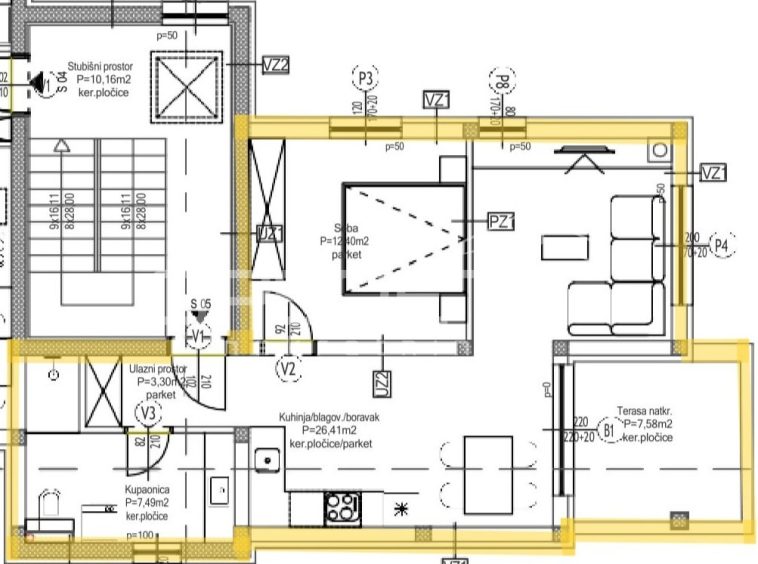 On the 2nd floor of the building is located S5, with an area of ​​53.05 m², which includes an entrance hall, bathroom, bedroom, kitchen with dining room and living room with a covered terrace. The apartment has two parking spaces, one of which is covered, and a functional storage room in the basement.