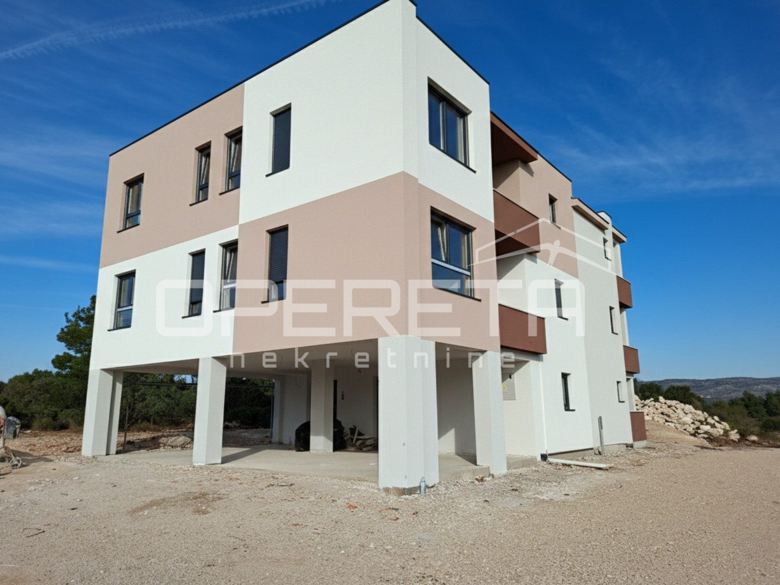The building is located next to a road, but not on the main road, which guarantees peace and privacy. The city beach Rezalište is just a few minutes’ walk away, and the Dalmare shopping center and the center of Šibenik are less than a 10-minute drive away.