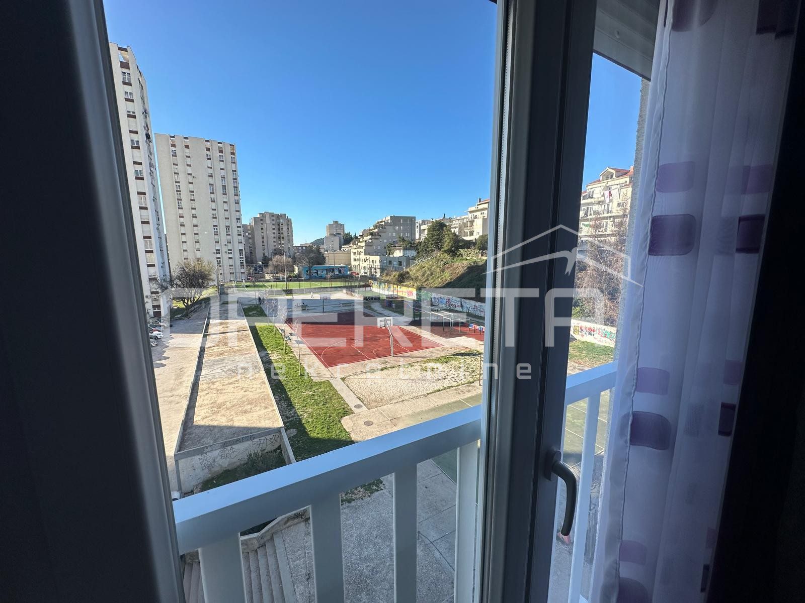 Each bedroom, as well as the living room, features a French balcony, ensuring plenty of natural light and ventilation. The apartment is fully furnished and ready to move in, perfect for those looking for a functional home in a prime location in Split.
