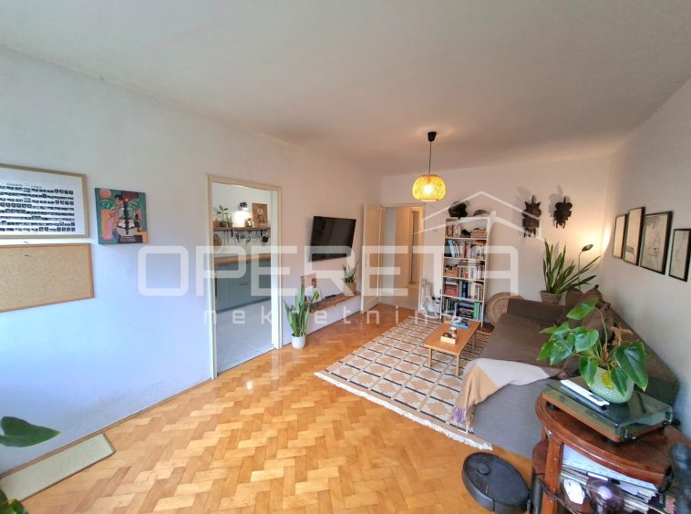 This fully furnished one-bedroom apartment with a total area of 53.6 m2 is located on the high ground floor of a 5-story residential building, near the city center, in the Dobri area.