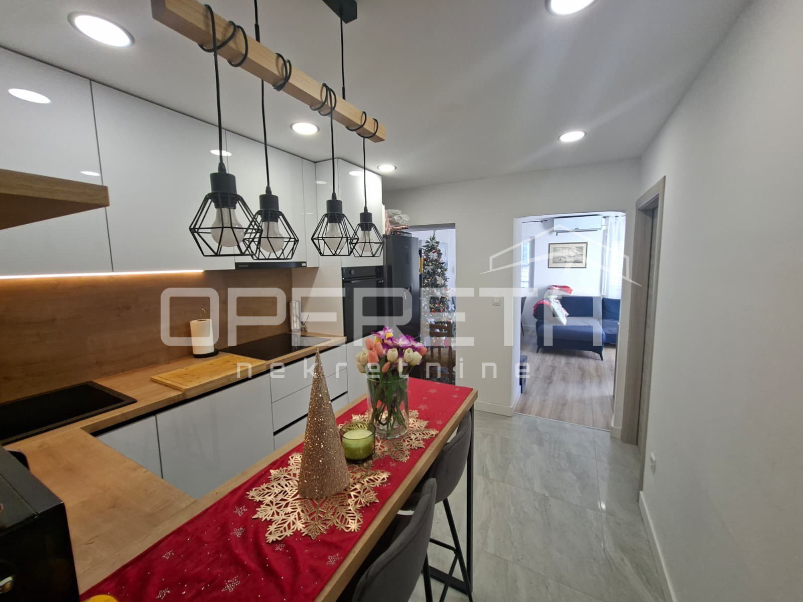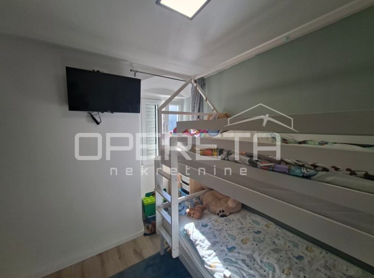 From the living room, on the left, you enter the second bedroom of 8.1 m², while on the right you exit to a spacious and exceptionally beautiful terrace of 15 m², which represents a real small city oasis and a perfect place to enjoy the warmer months.