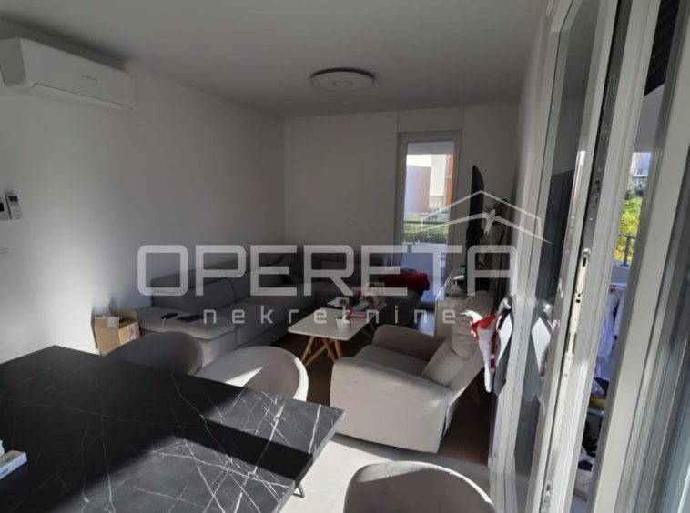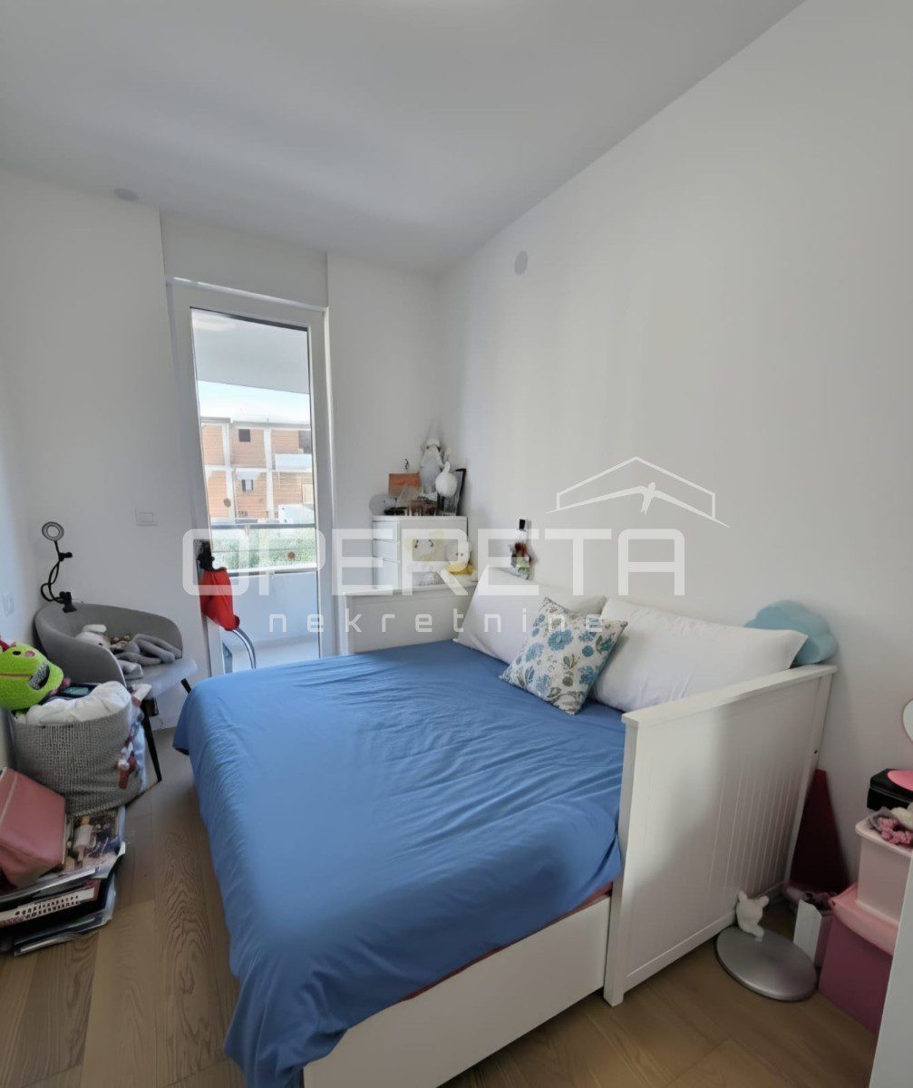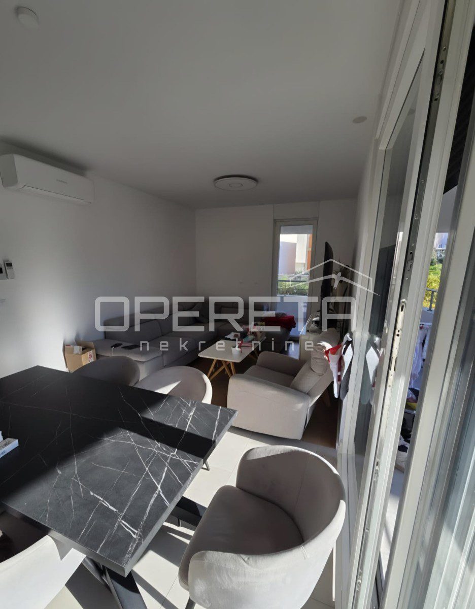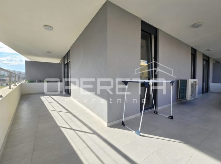 In the highly sought-after neighbourhood of Mejaši, in a newly constructed building, there is a functional apartment on the 1st floor, facing southeast. The apartment consists of an internal living area of 52.25 m², a balcony of 26.44 m², an additional green surface of 3.73 m², and a garage parking space of 14 m².
