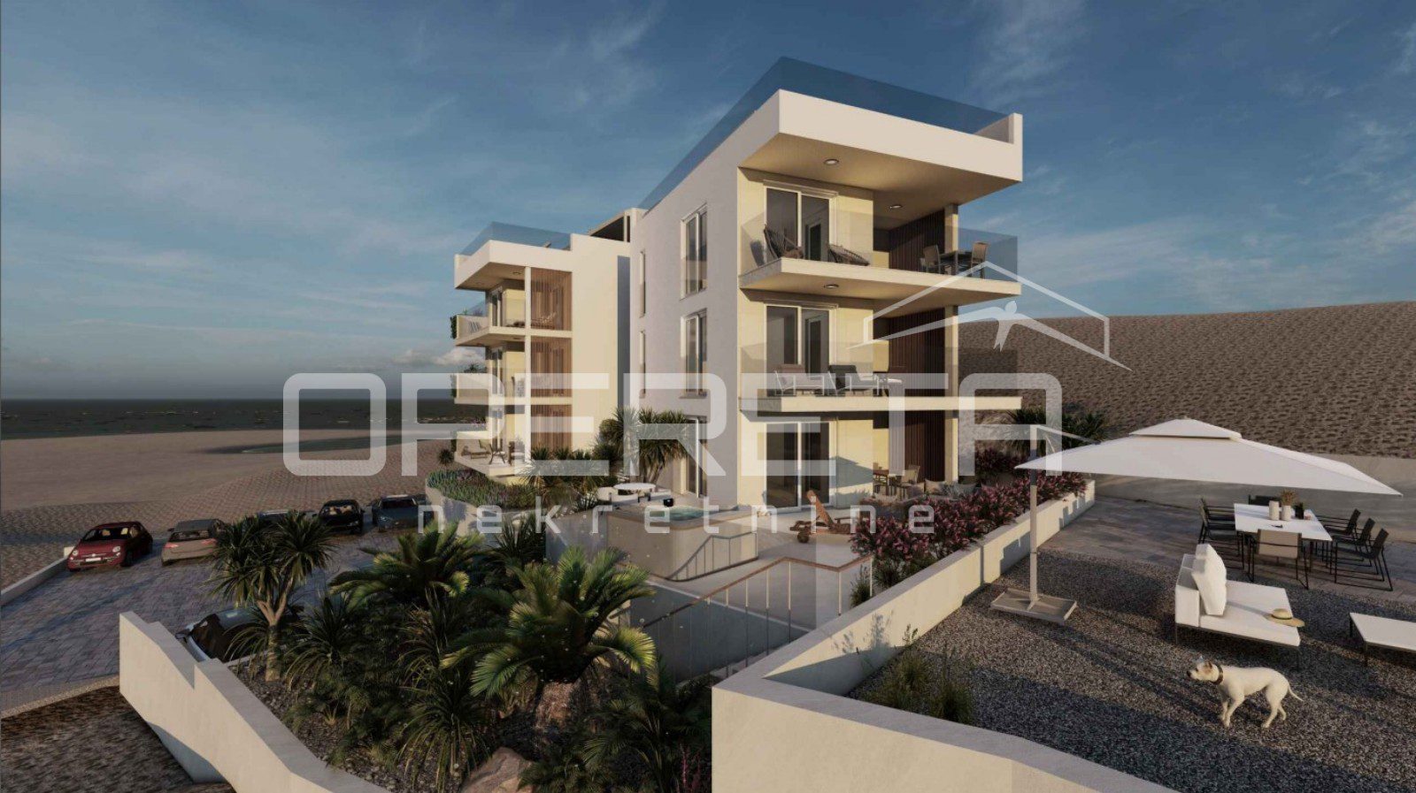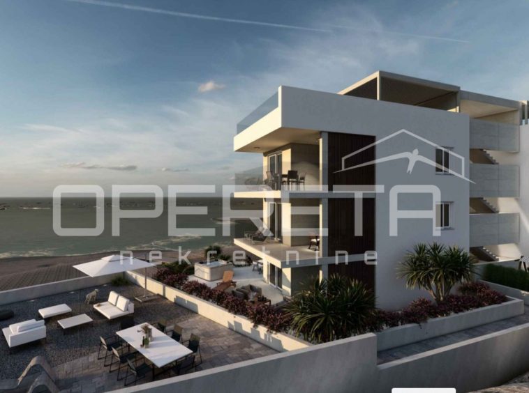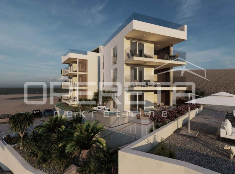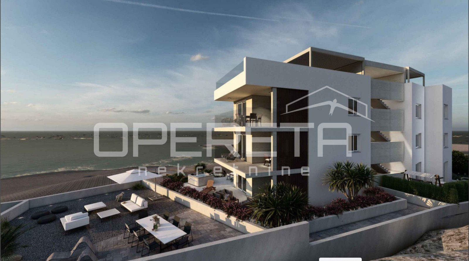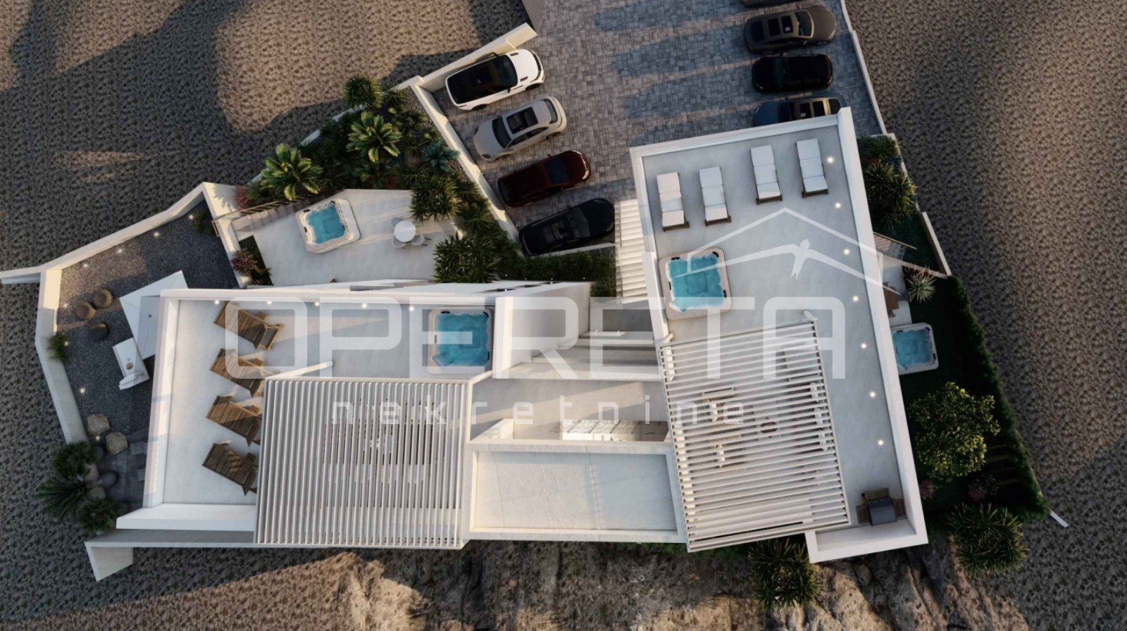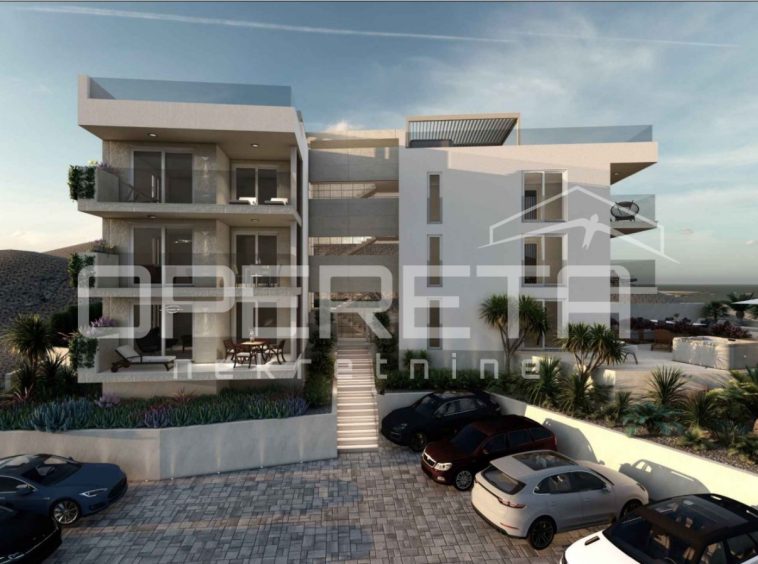 This modern apartment with a total area of 75.32 m² is located on the top floor of a new build in Okrug Gornji, ensuring privacy and unobstructed views with no neighbors above. The apartment features a hallway of 3.66 m², two bedrooms (10.44 m² and 6.37 m²), a bathroom of 4.12 m², and a spacious living room with kitchen and dining area of 21.58 m². The covered terrace of 11.59 m² has two separate exits, one from the living room and one from the main bedroom, while the apartment also includes a flat, walkable roof of 17.56 m², perfect for sunbathing, socializing, or creating a private outdoor space.