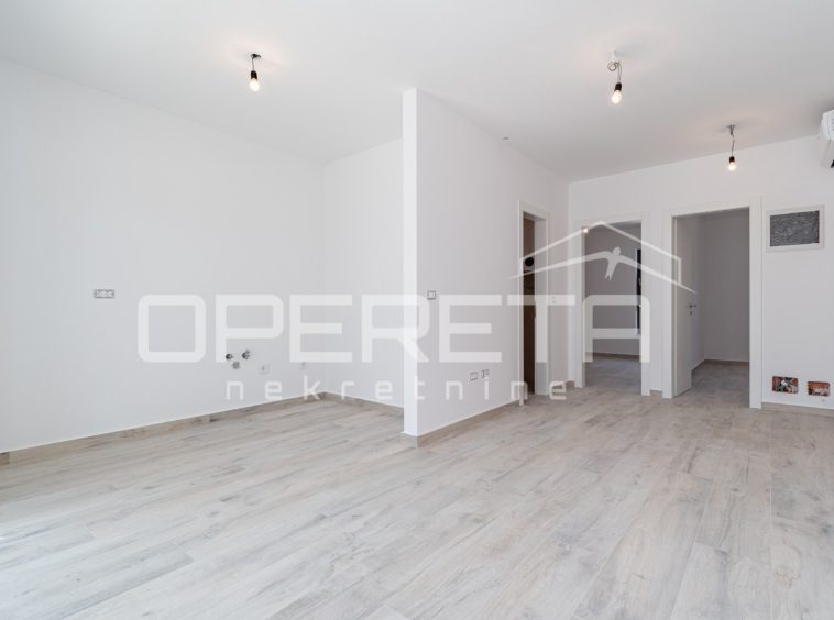 The apartment has an indoor area of 45.60 m2 and consists of an entrance hall, bathroom, two bedrooms, kitchen with dining room and living room.