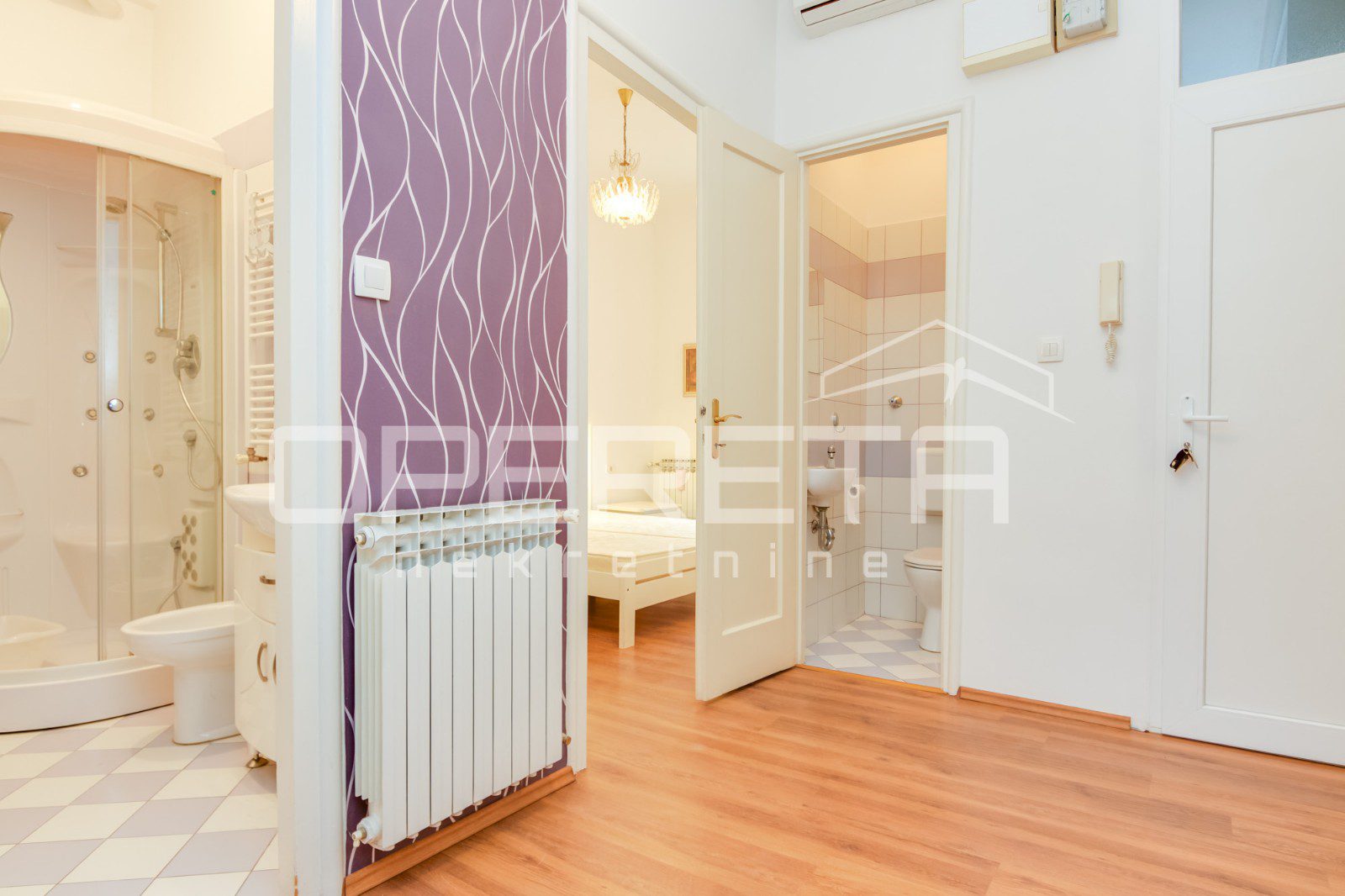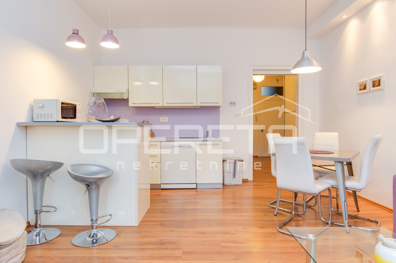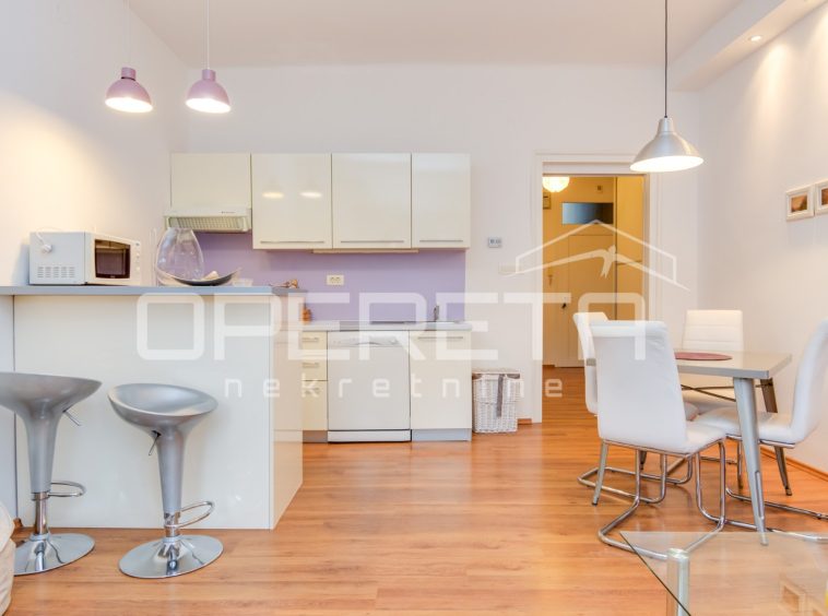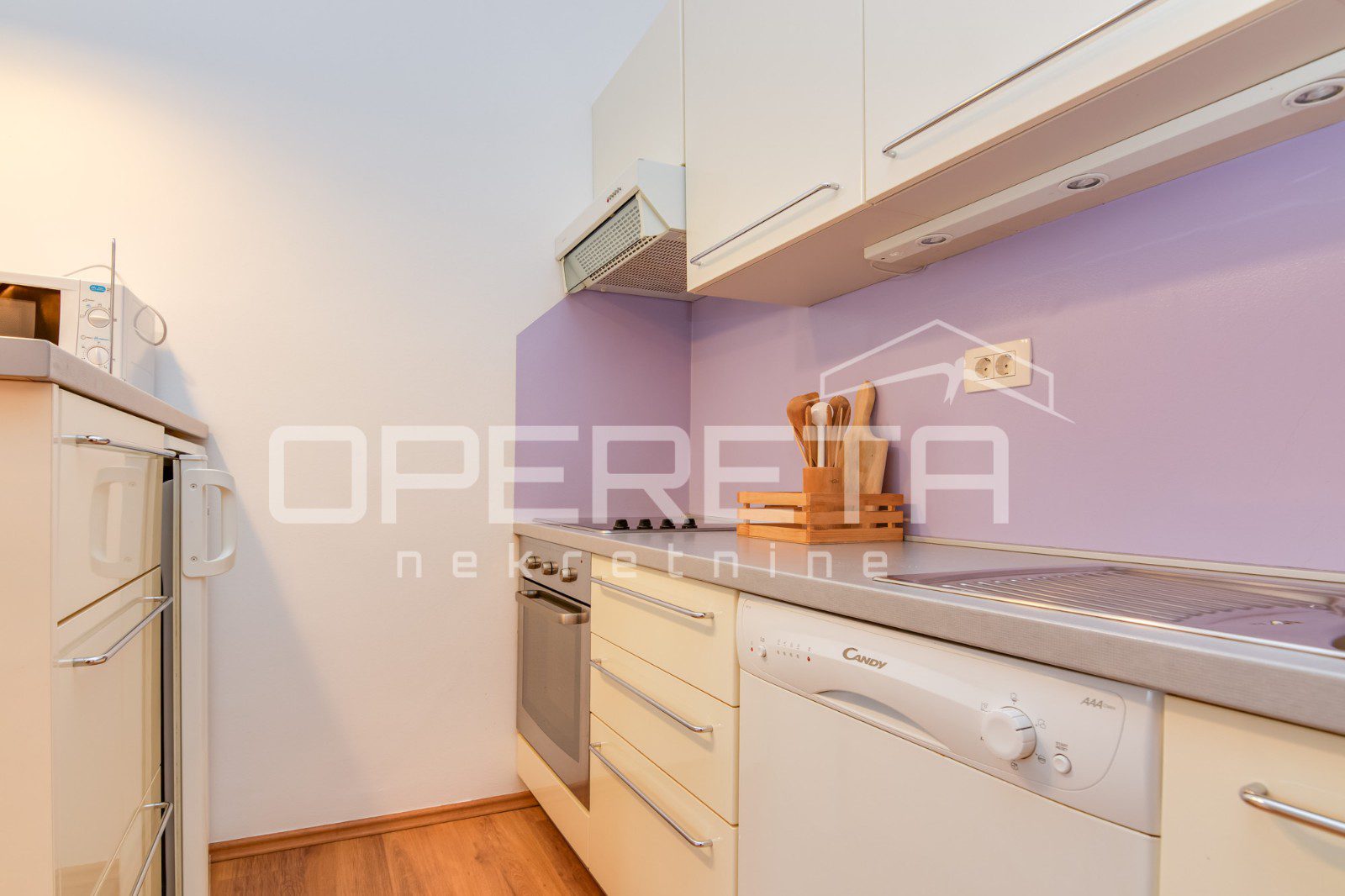 Downtown, British Square, apartment to rent. It consists of a living room with a dining room and a kitchen, one bedroom, a bathroom (with a shower) and balcony. Apartment is fully equiped and completely furnished with new furniture and appliances: refridgerator with a freezing compartment, built-in stove, built-in oven, a dish-washer, microwave oven, a washing-machine, Air Conditioner (AC), security (lock) doors.