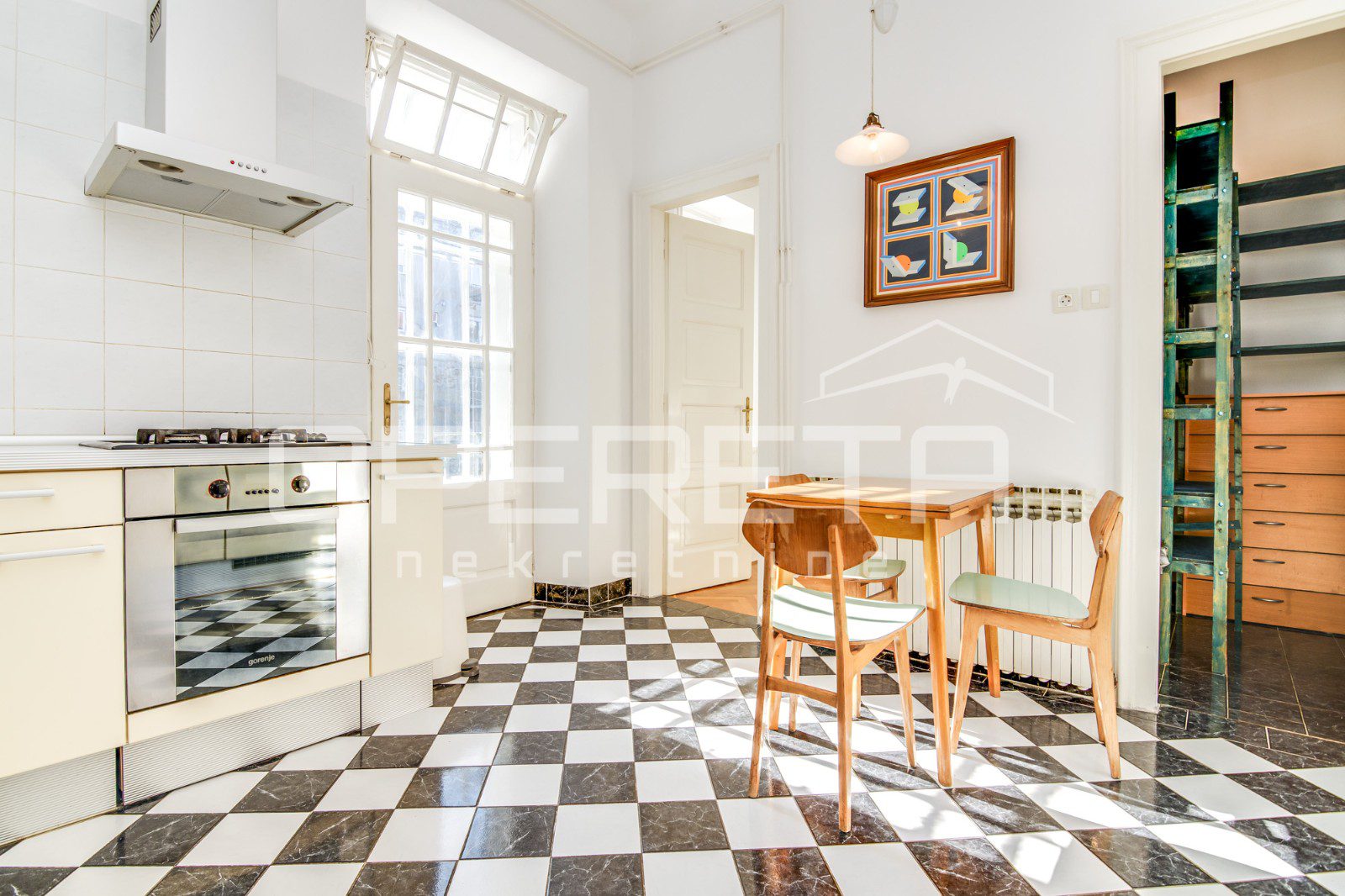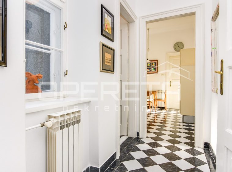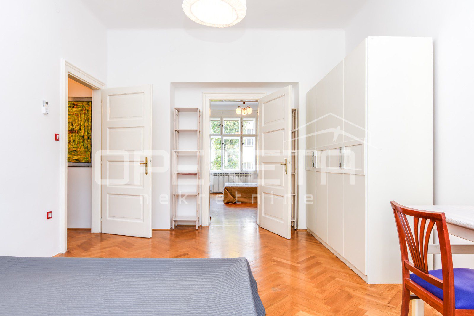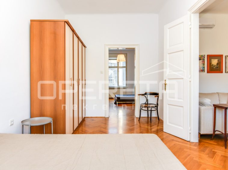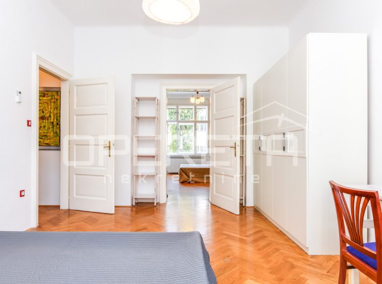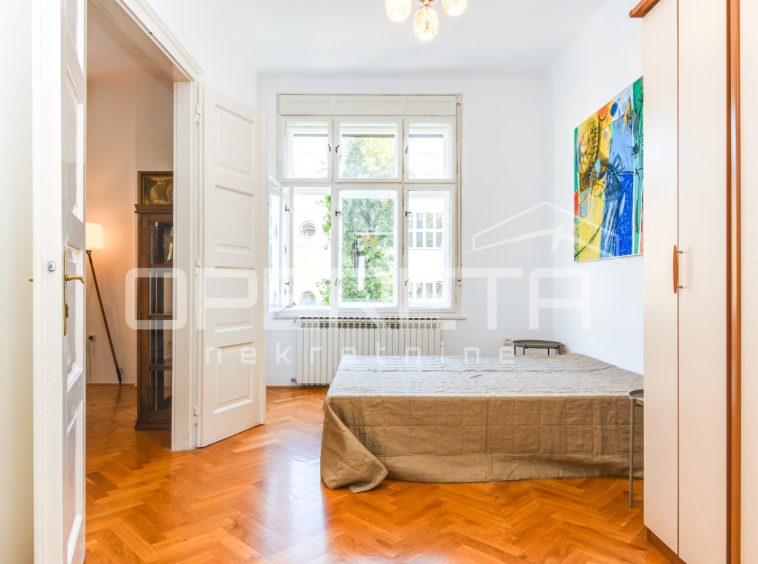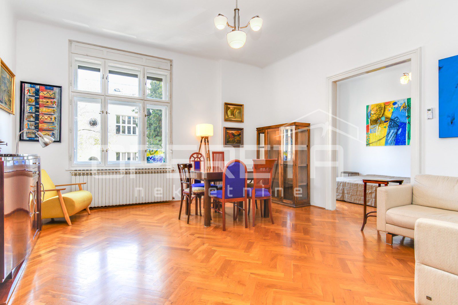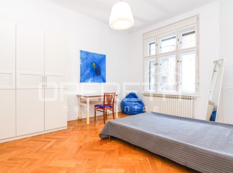 A spacious 3-room apartment for rent, in a great location near tram lines, theaters, universities, cafes, restaurants… The apartment is of a civic type, spacious and airy. It is located on the 2nd floor of a building without an elevator, and consists of an entrance hall, an east-facing living room from which you enter one bedroom, a second bedroom that has an entrance from the hallway, a bathroom with a bathtub, a kitchen with a dining room and a pantry, a toilet and a storage room in the courtyard of the building.