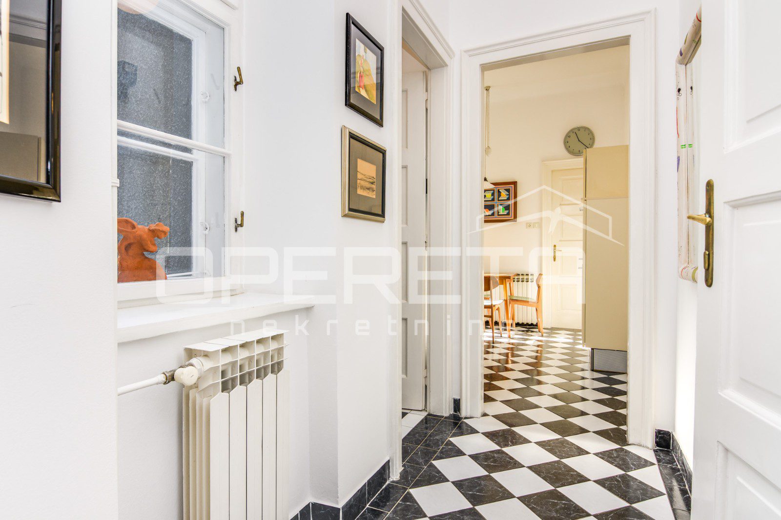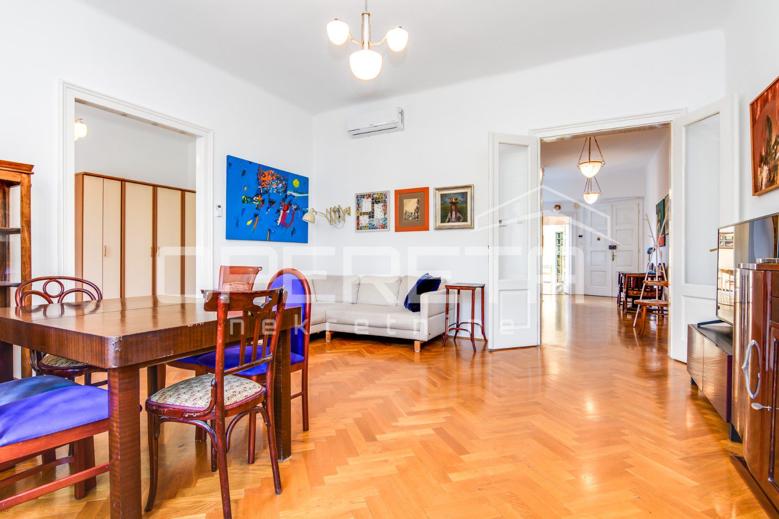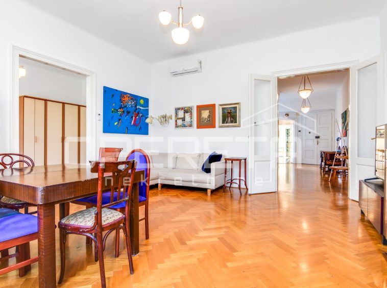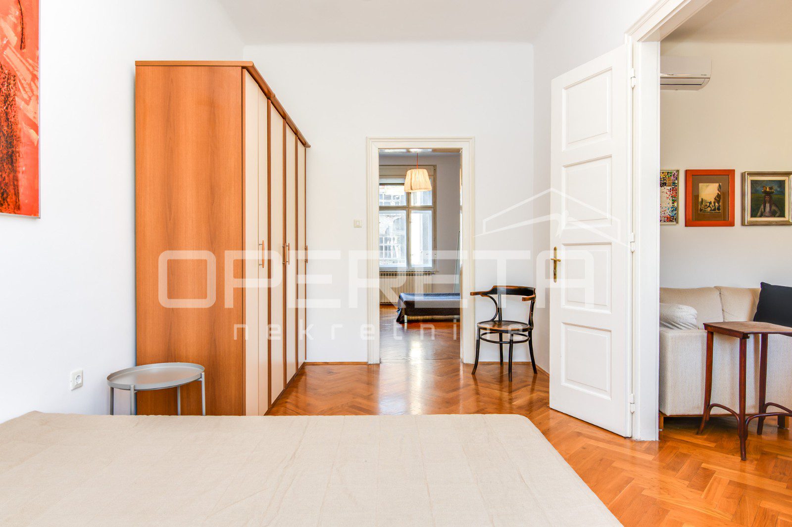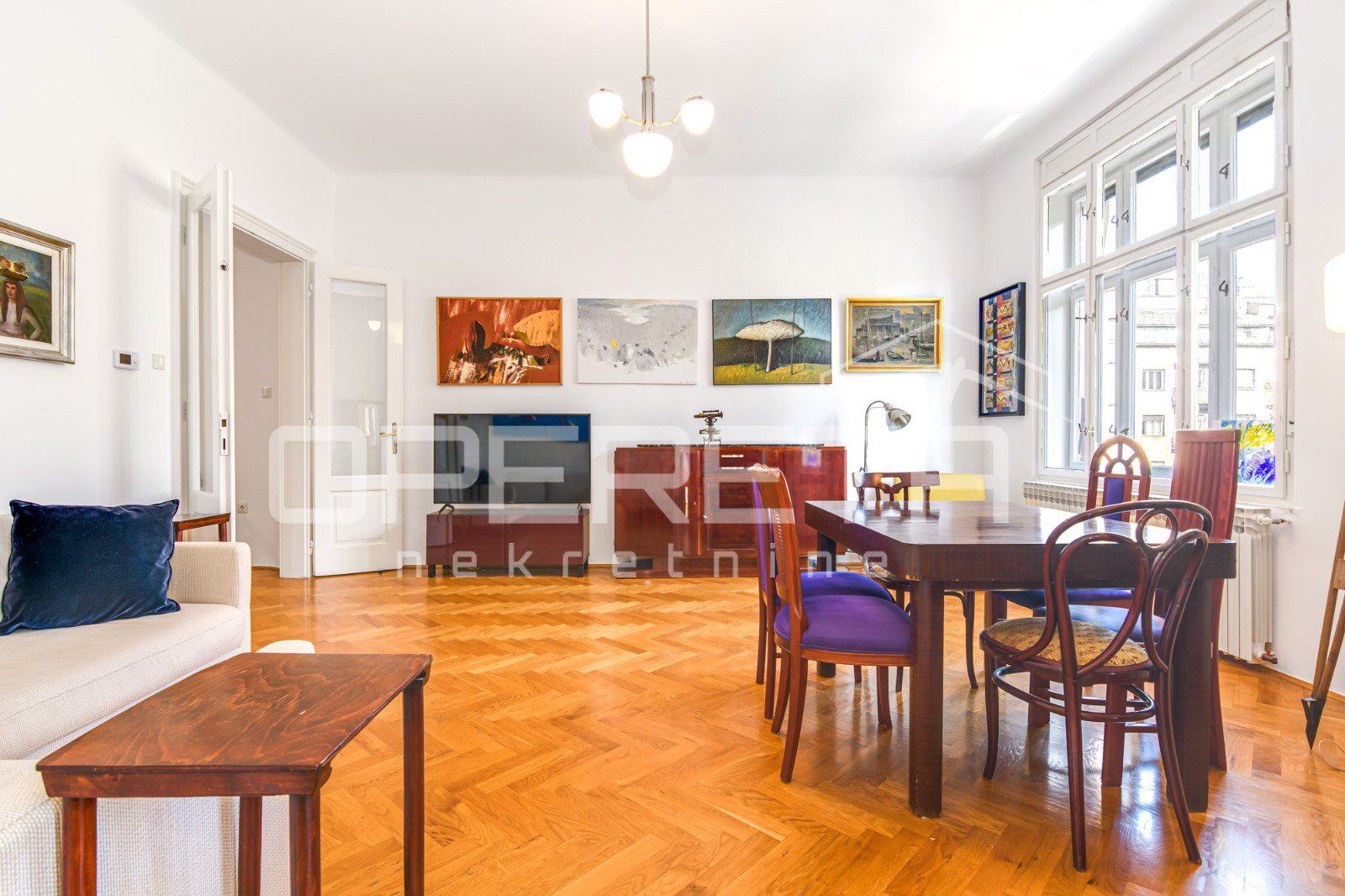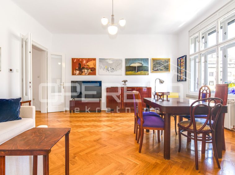 A spacious 3-room apartment for rent, in a great location near tram lines, theaters, universities, cafes, restaurants… The apartment is of a civic type, spacious and airy. It is located on the 2nd floor of a building without an elevator, and consists of an entrance hall, an east-facing living room from which you enter one bedroom, a second bedroom that has an entrance from the hallway, a bathroom with a bathtub, a kitchen with a dining room and a pantry, a toilet and a storage room in the courtyard of the building.