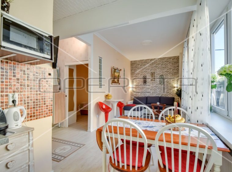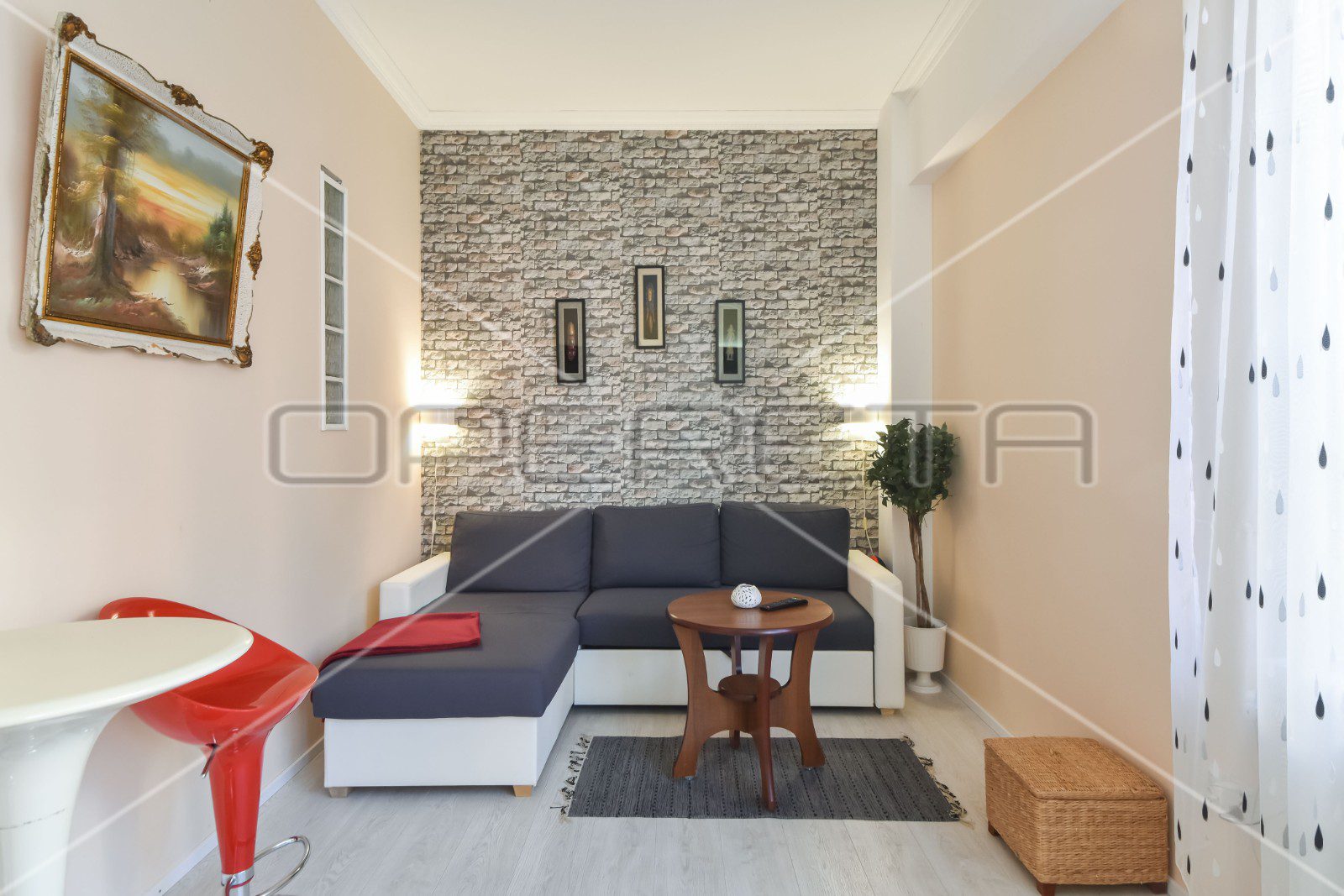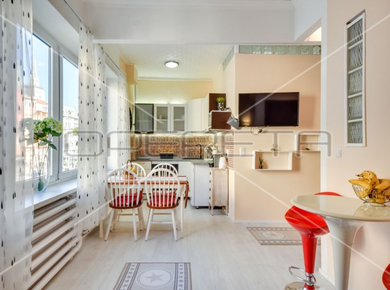 Center, 1.5-room, 38 m2, newly renovated and well-equipped. It consists of a living room with dining room and kitchen equipped with all appliances (hob, oven, combined refrigerator, hood), bathroom (shower, bathtub, toilet) and hallway. The apartment is located in the very center of the city, in an attractive location, close to all amenities.