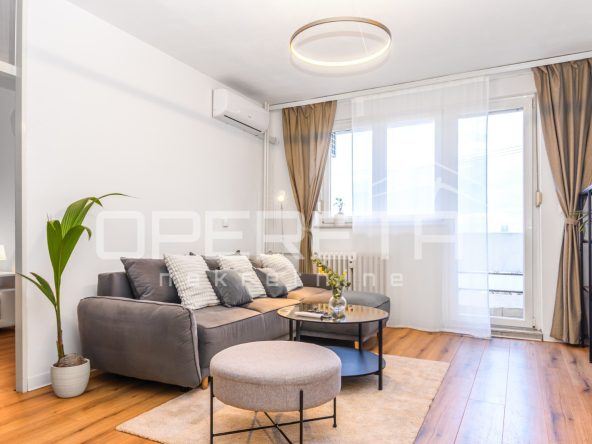 The apartment has 103m2 and consists of: a living room that, together with the kitchen and dining room, forms a beautiful open space and is located on the second floor of the apartment, 3 bedrooms, one of which has its own bathroom, and one separate bathroom are located on the first floor of the apartment. The apartment also has two beautiful terraces and a 20m2 storage room in the basement of the building. The apartment also has a garage.