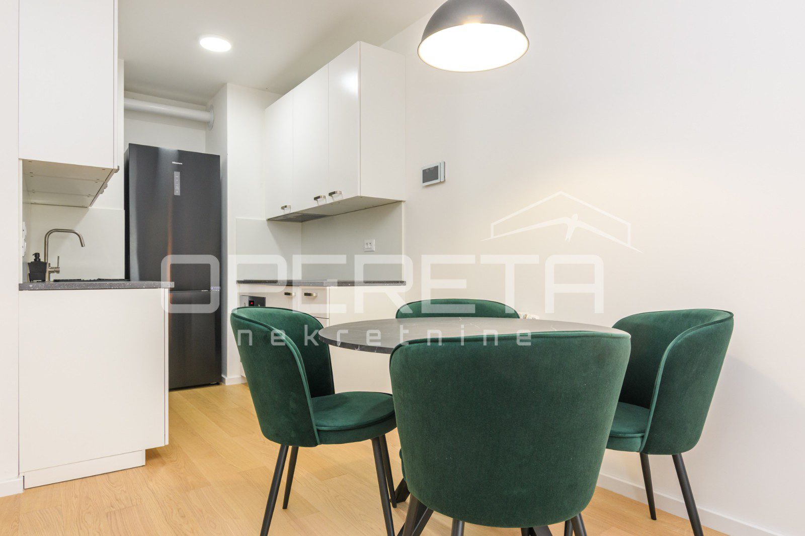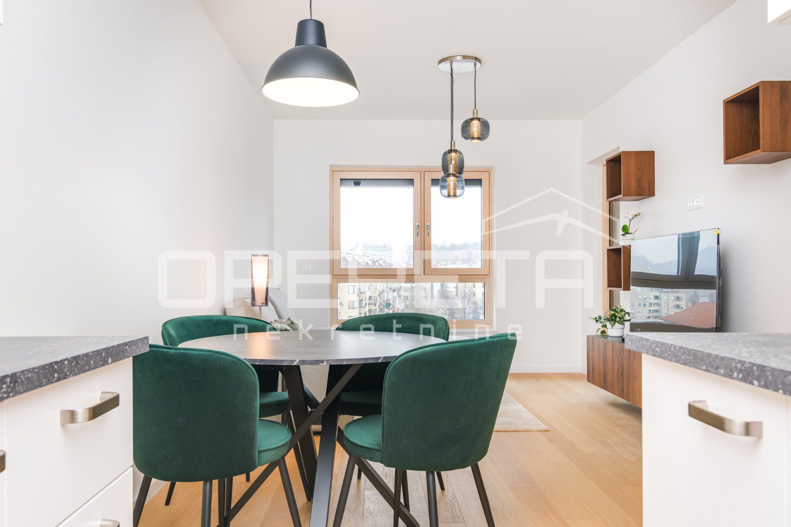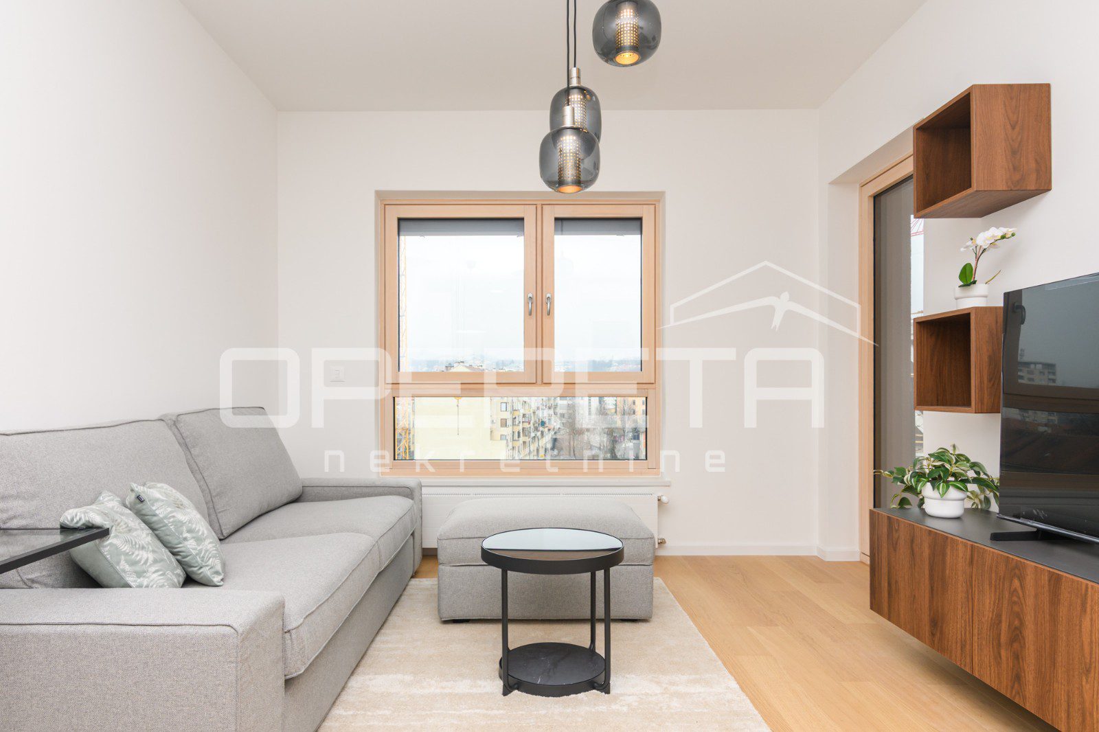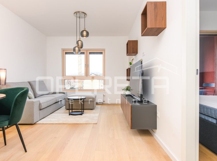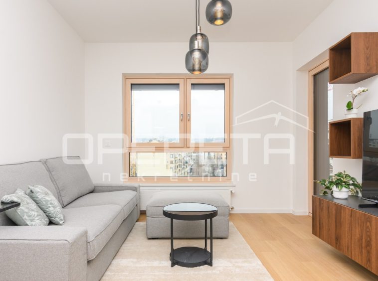 Apartment on the 6th floor with elevator in a new building, first rental! Fully furnished and equipped with appliances. Consists of a hallway, bathroom, open space kitchen with dining room and living room with access to a loggia and a bedroom. The apartment has a parking space in the garage.