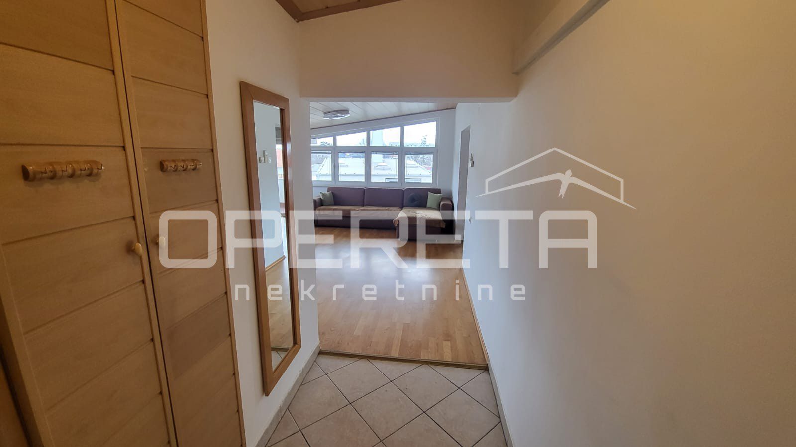 RENT, APARTMENT in a condominium, Gornja Dubrava. The apartment consists of an entrance hall, bathroom with toilet, living room, kitchen connected to the dining room, 2 bedrooms and a covered terrace, and part of the storage room. The apartment is suitable for families with children or 2 to 3 students. It is located in a good location near all amenities. Utilities are 100 euros! Pets are not allowed! Air conditioners in every room!