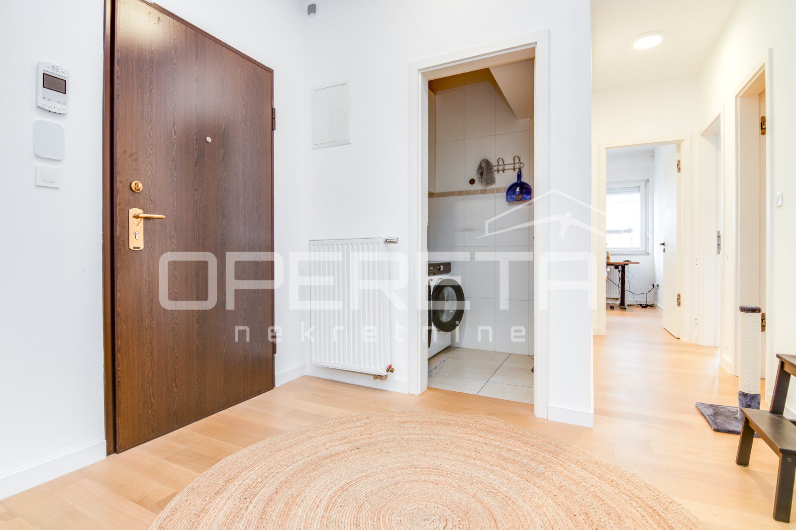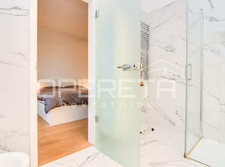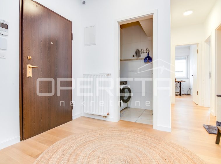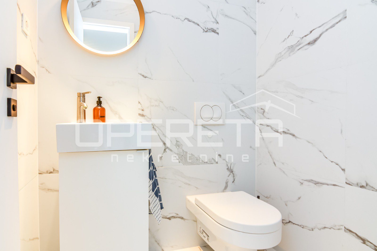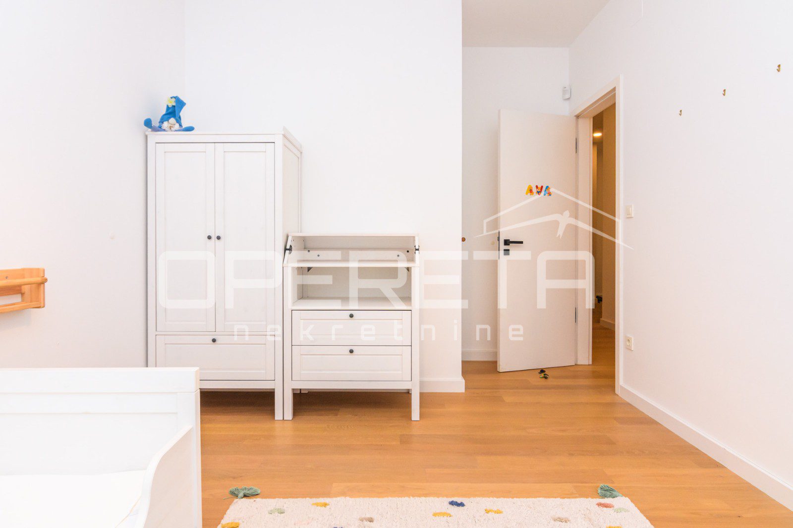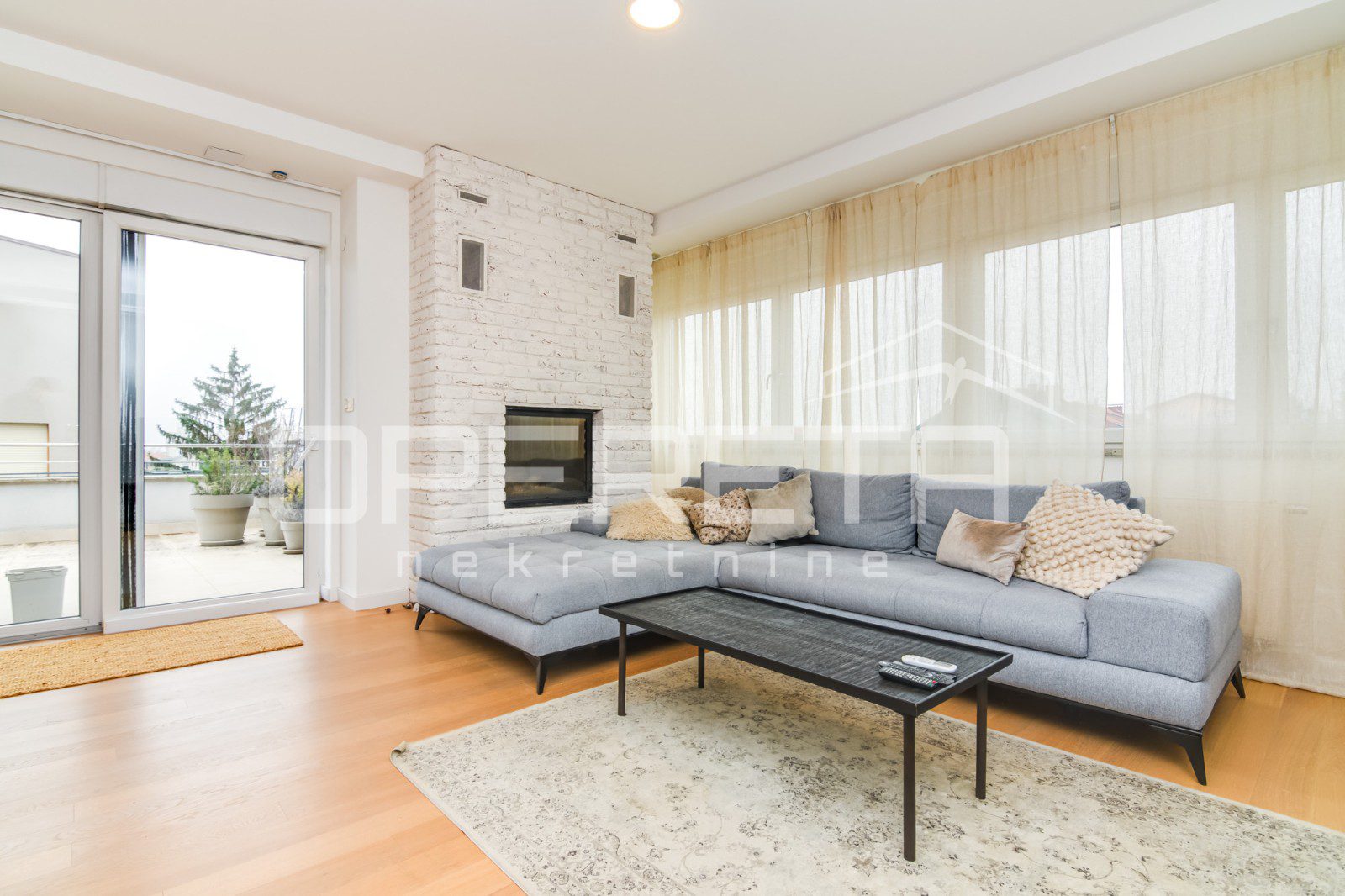 The apartment consists of a lower floor with 3 bedrooms, one of which (master) has its own bathroom and a closed loggia, a laundry room and a bathroom, while on the second floor there is a large open space living room with a kitchen and dining room with access to a spacious terrace and a guest toilet